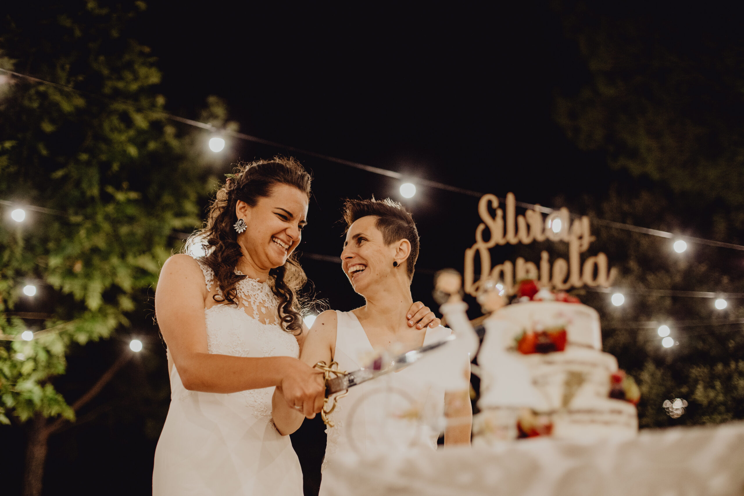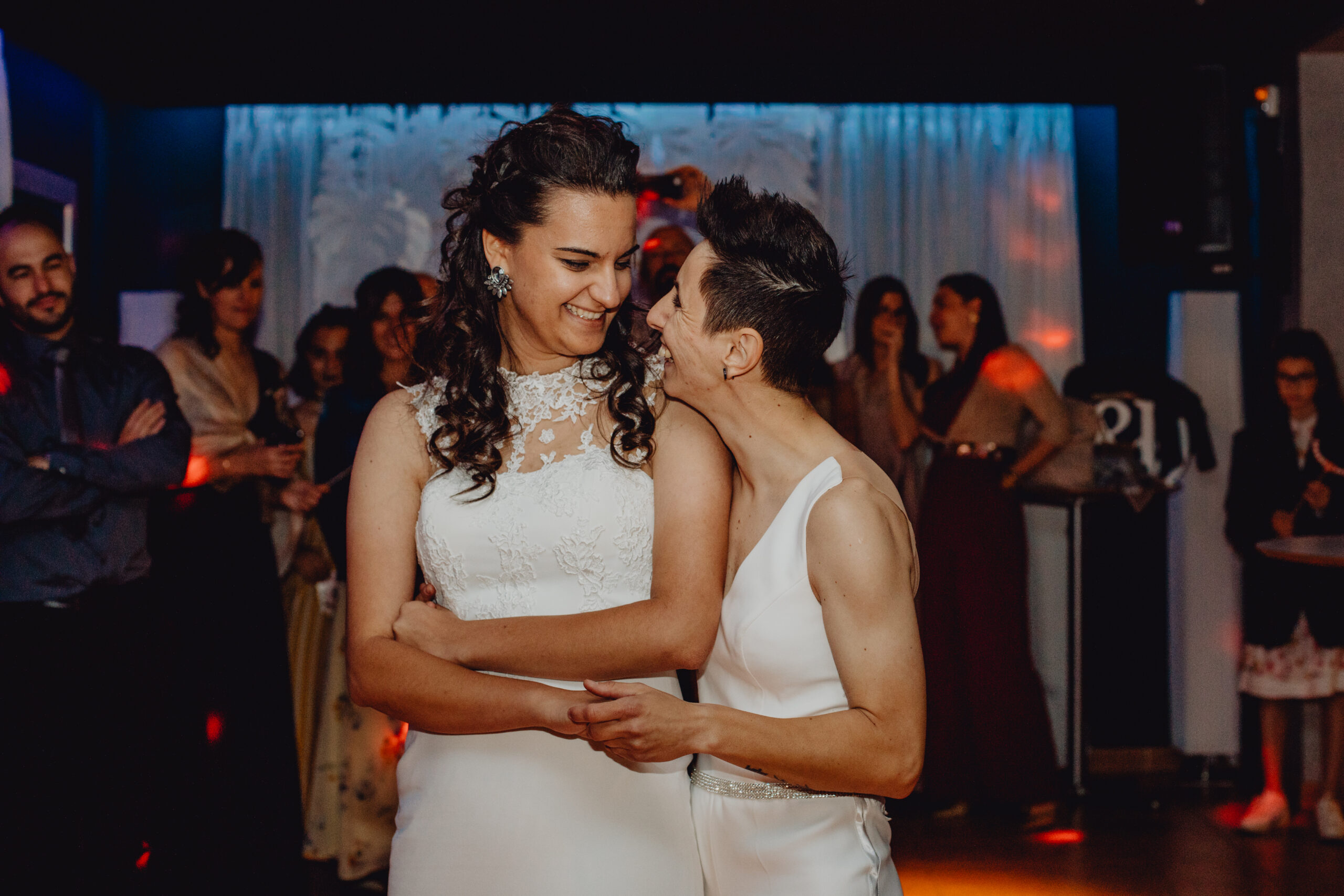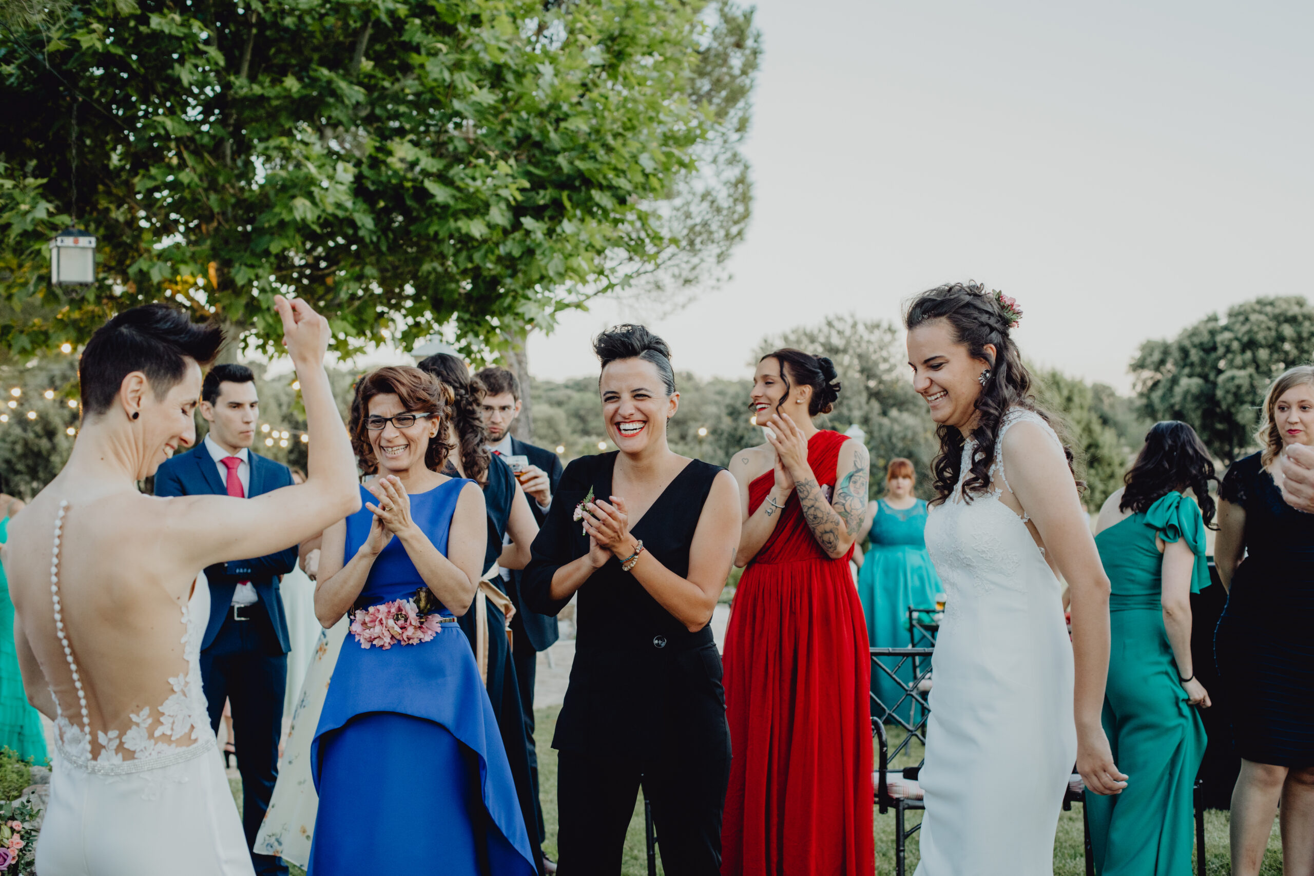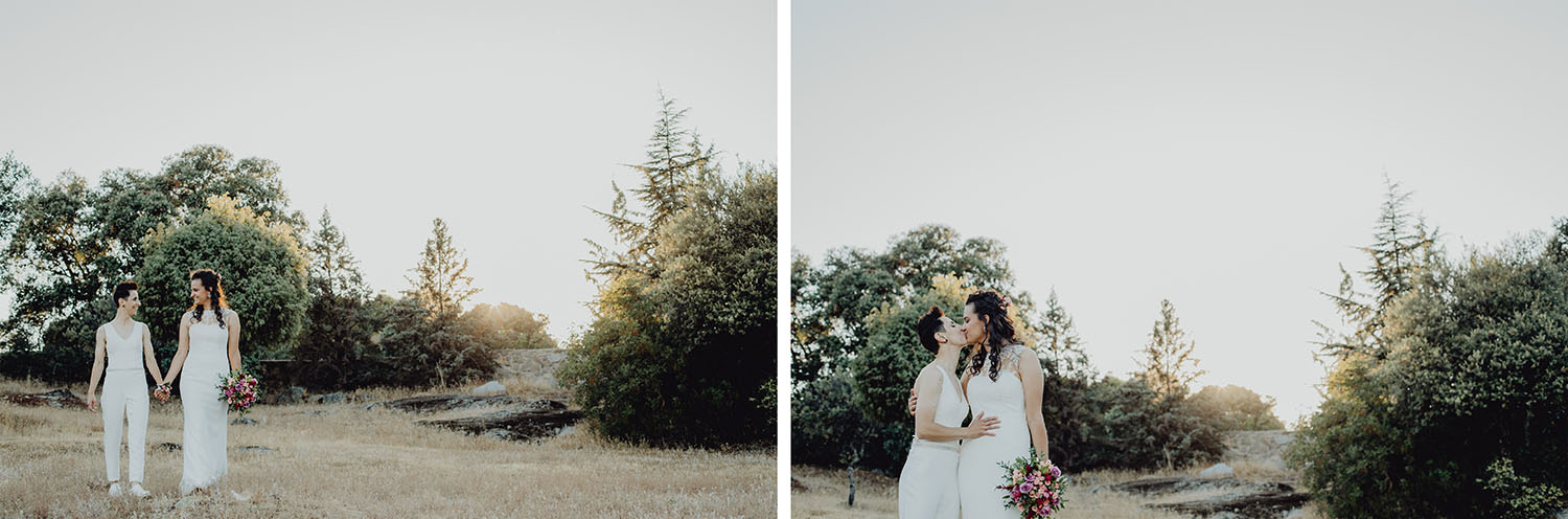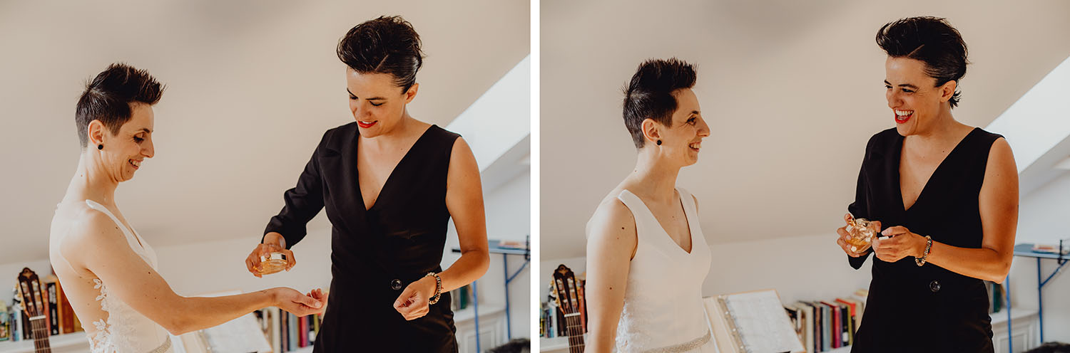 Si quieres ver lo re guapas que iban nuestras novias disfruta de sus fotos de boda. Una boda muy divertida, con música en vivo con sabor de los años ochenta en su fiesta, ritmos africanos en su cocktail y un precioso atardecer lleno de complicidad entre nuestras dos novias.