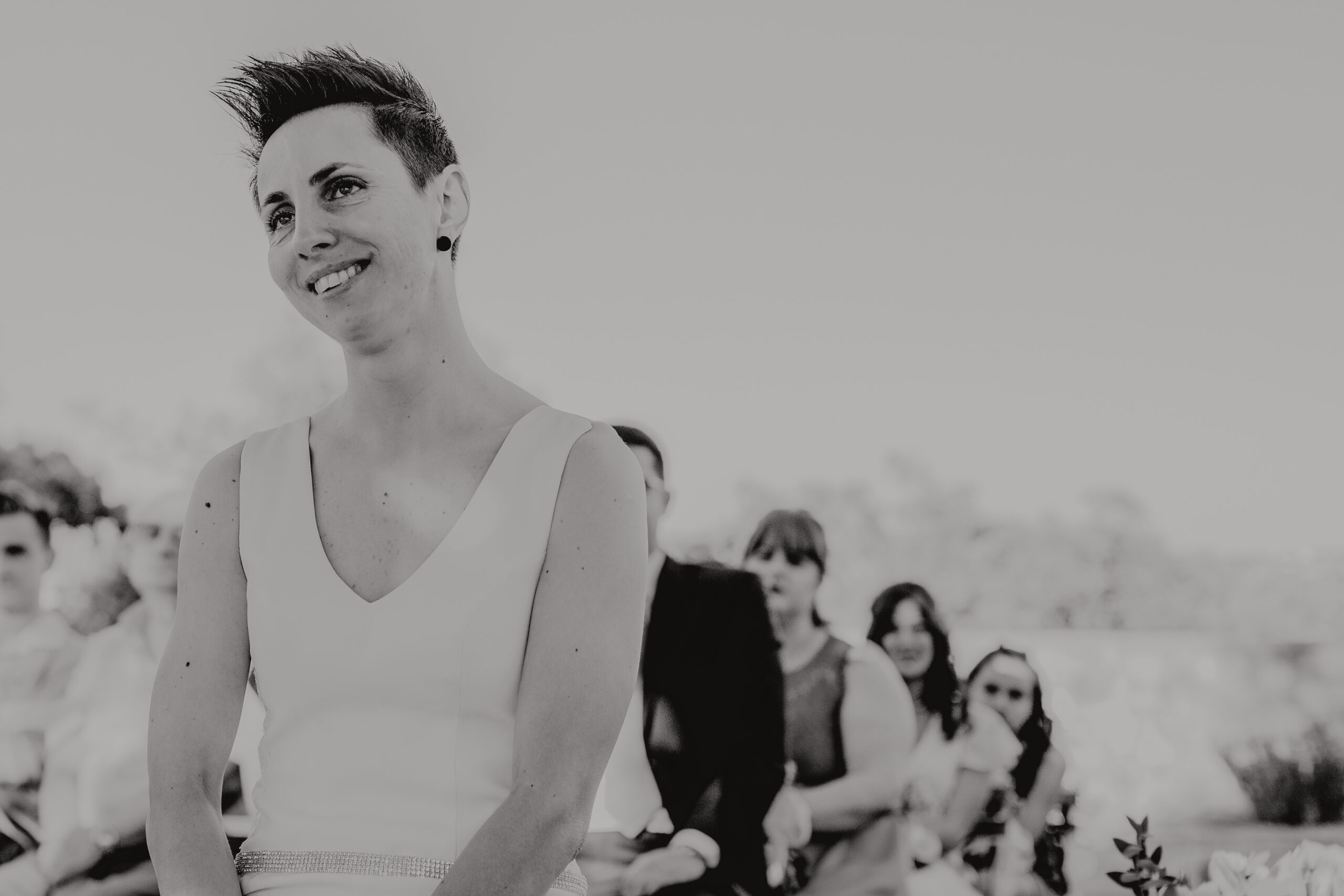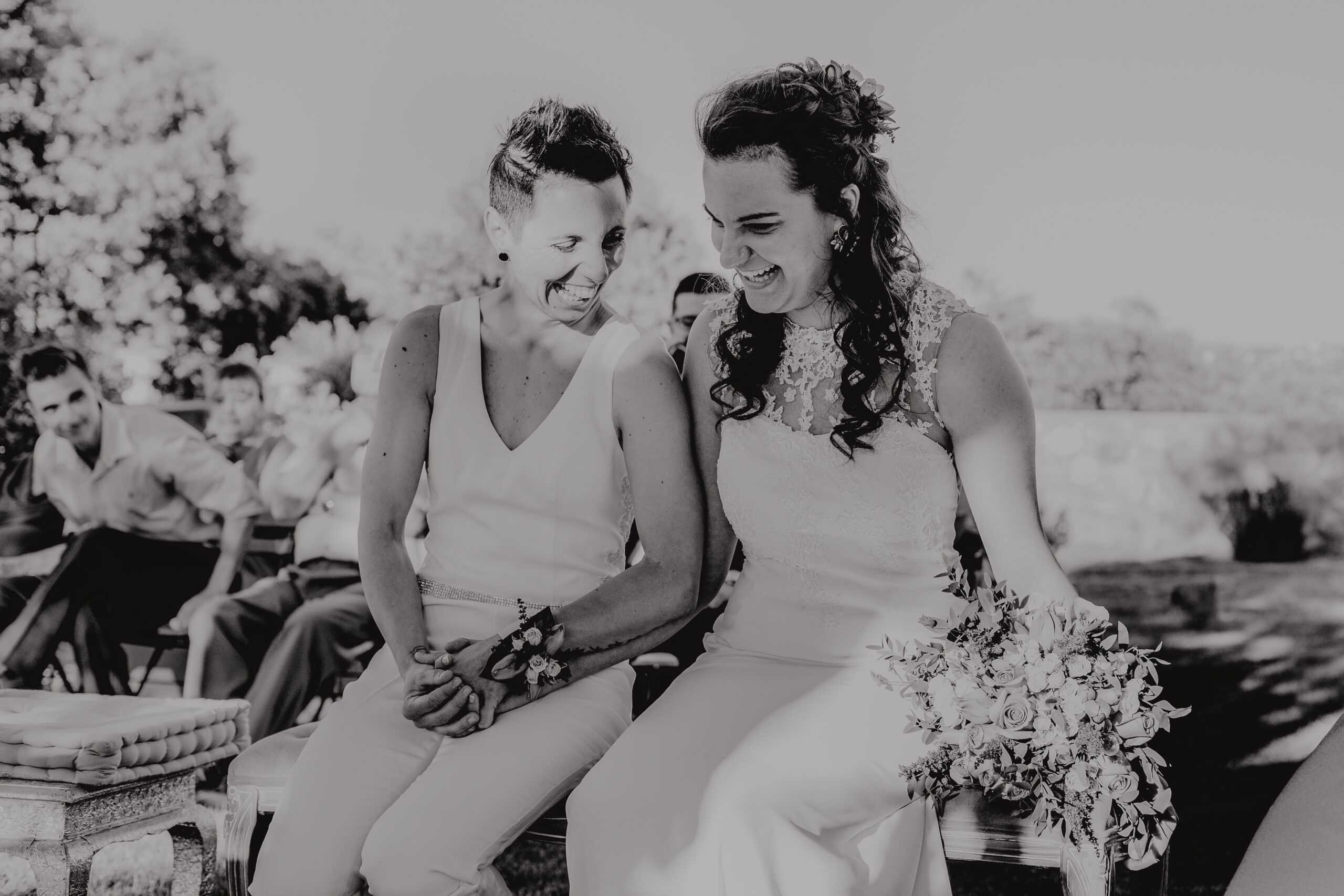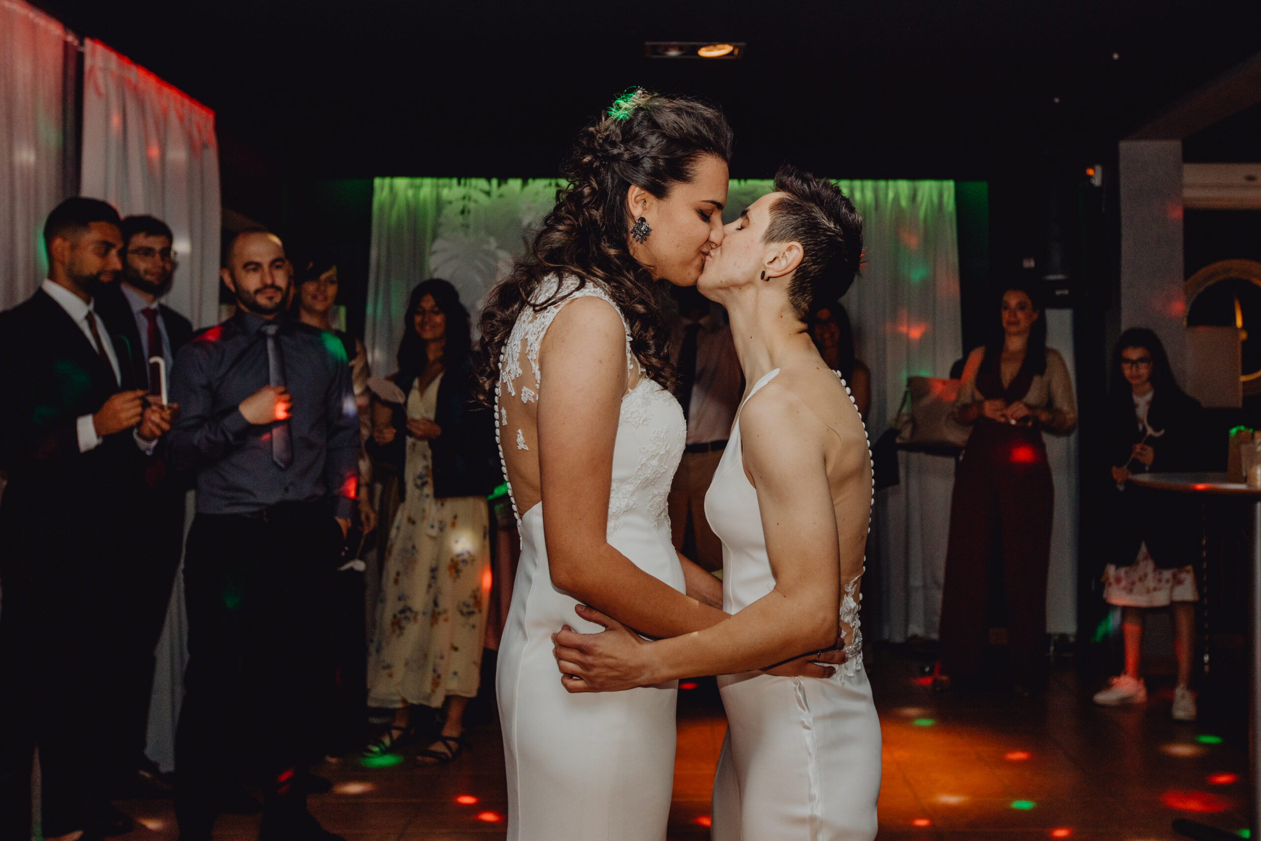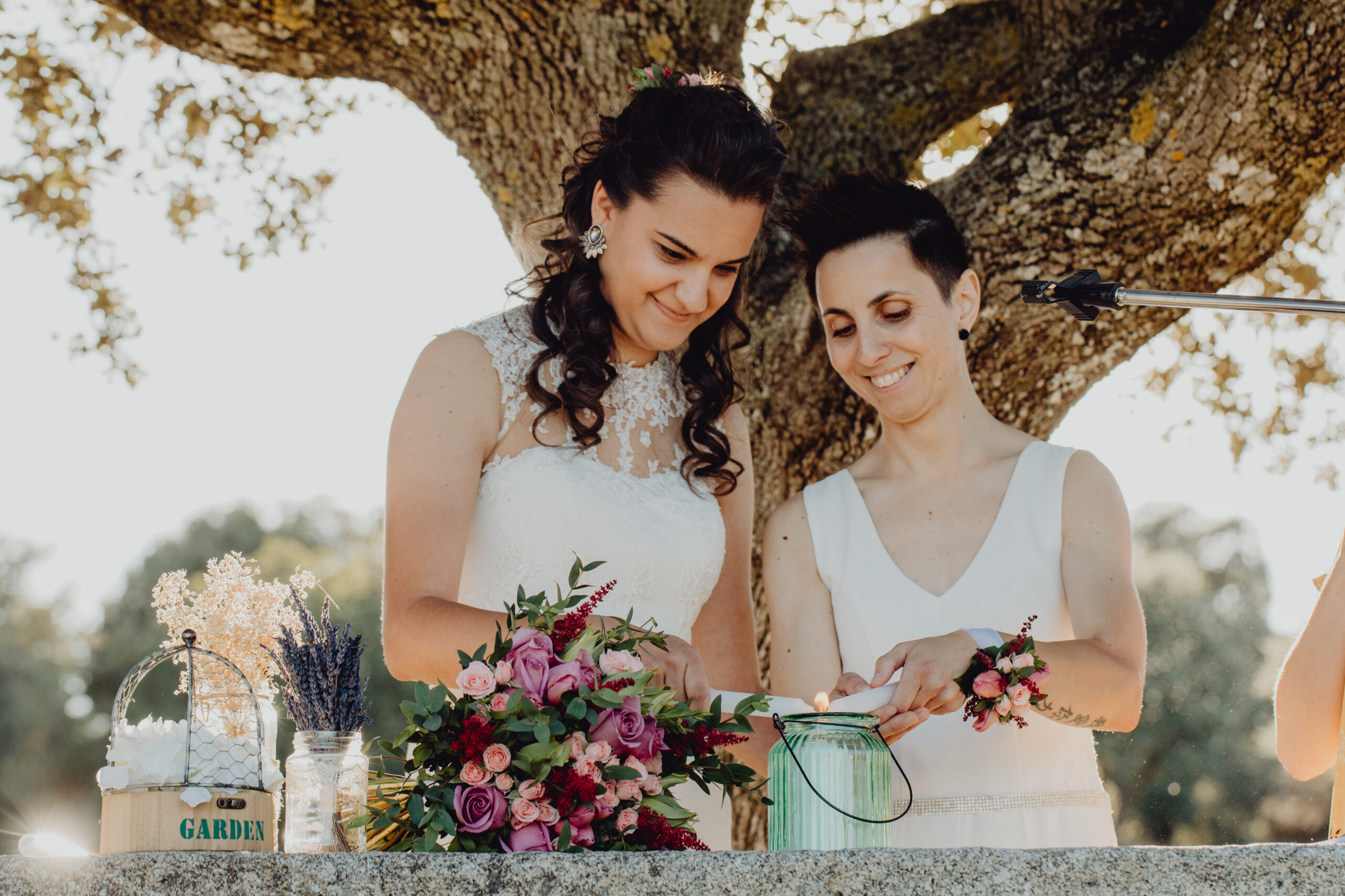 Si quieres ver lo re guapas que iban nuestras novias disfruta de sus fotos de boda. Una boda muy divertida, con música en vivo con sabor de los años ochenta en su fiesta, ritmos africanos en su cocktail y un precioso atardecer lleno de complicidad entre nuestras dos novias.