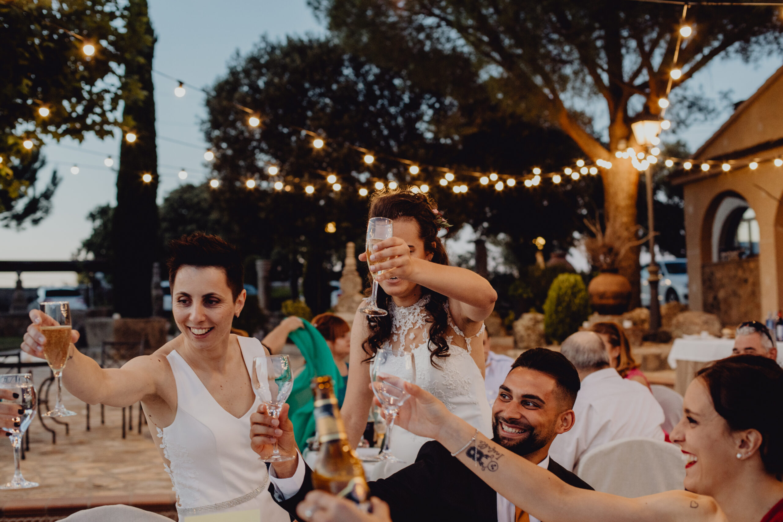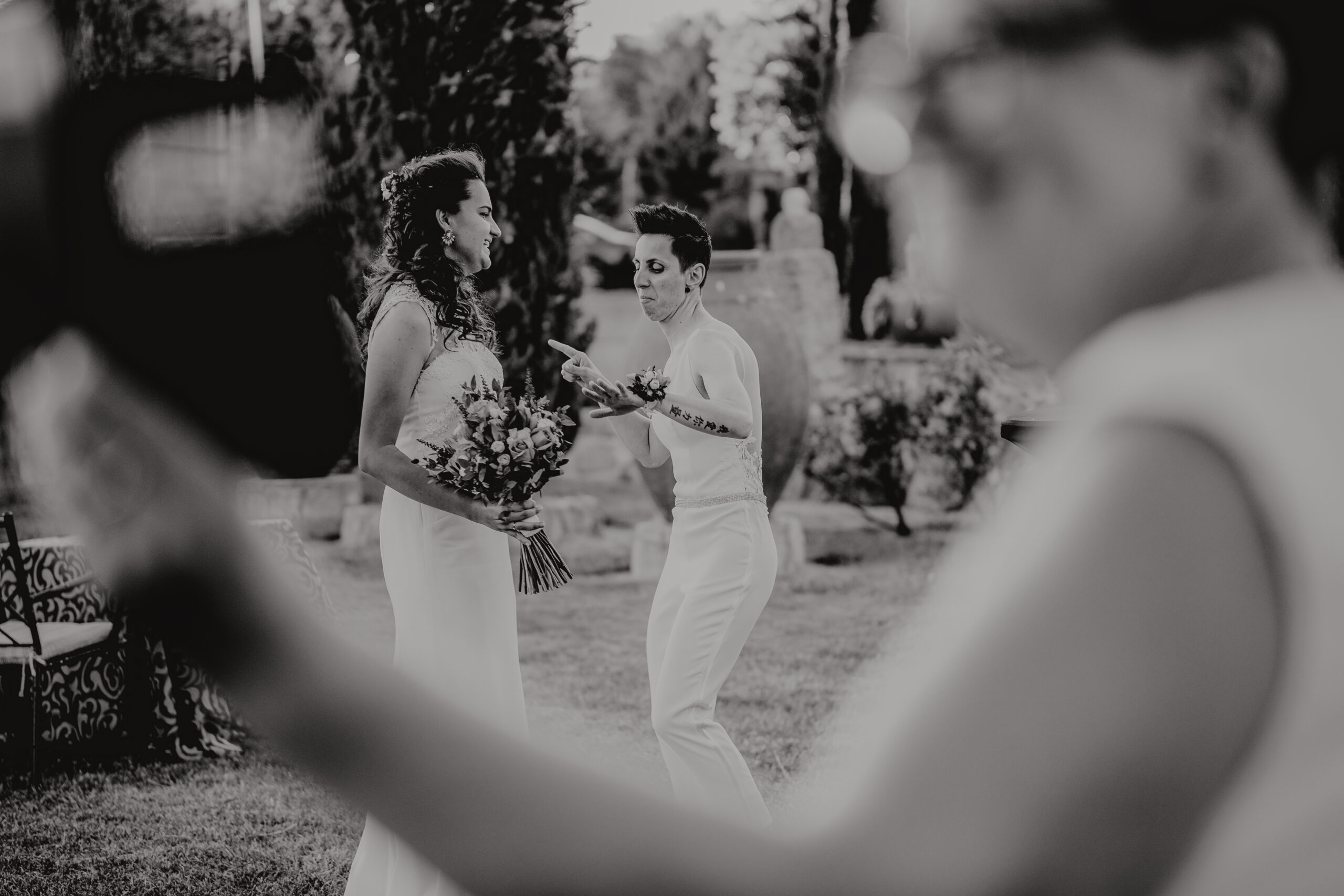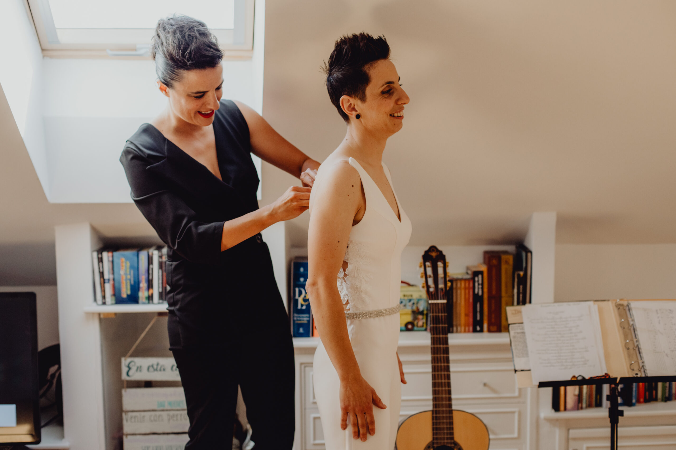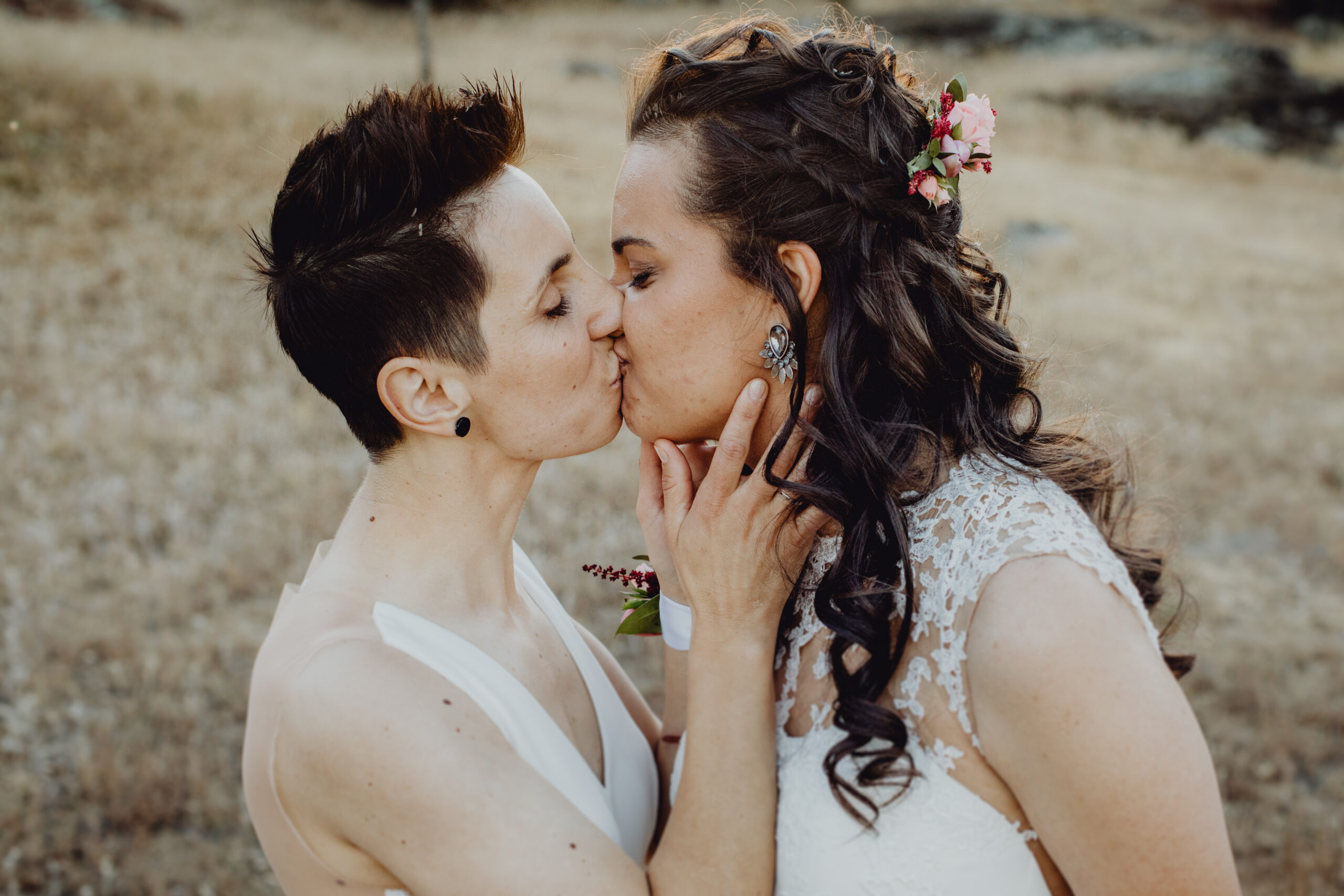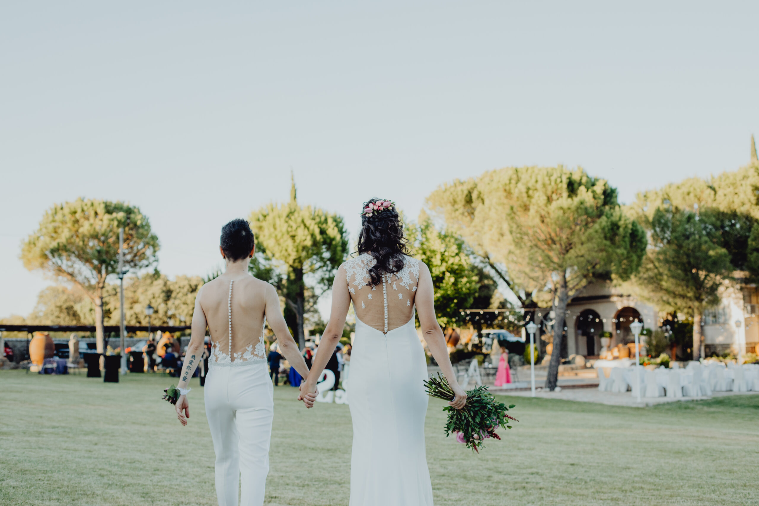 Si quieres ver lo re guapas que iban nuestras novias disfruta de sus fotos de boda. Una boda muy divertida, con música en vivo con sabor de los años ochenta en su fiesta, ritmos africanos en su cocktail y un precioso atardecer lleno de complicidad entre nuestras dos novias.