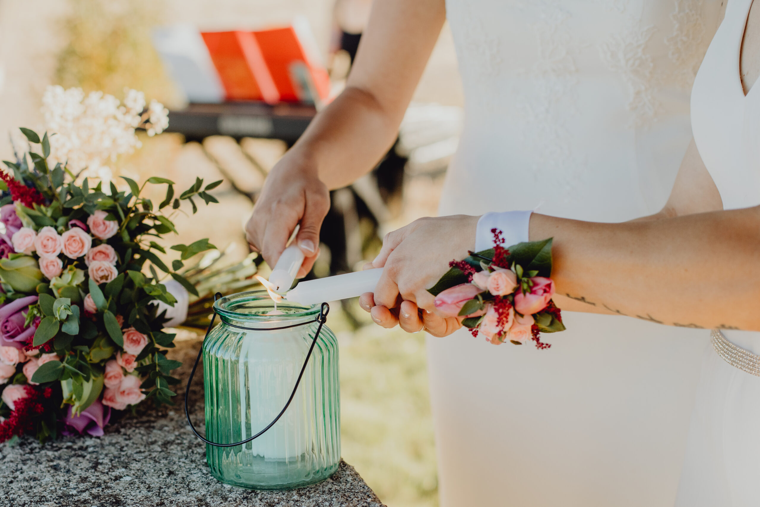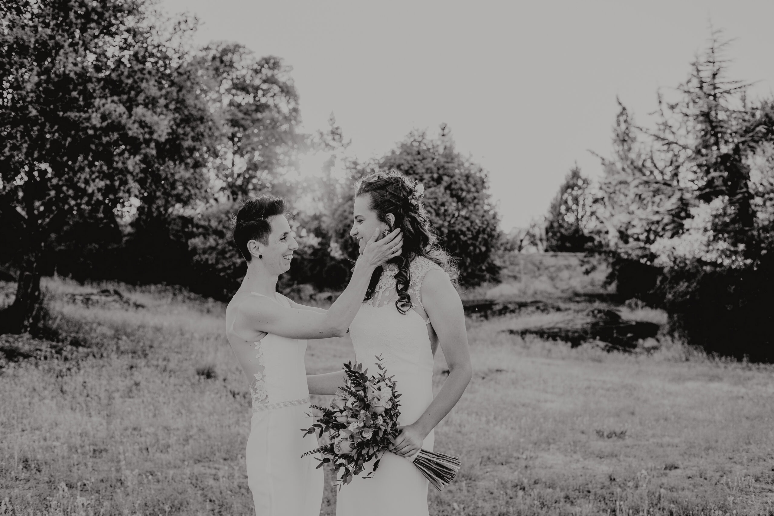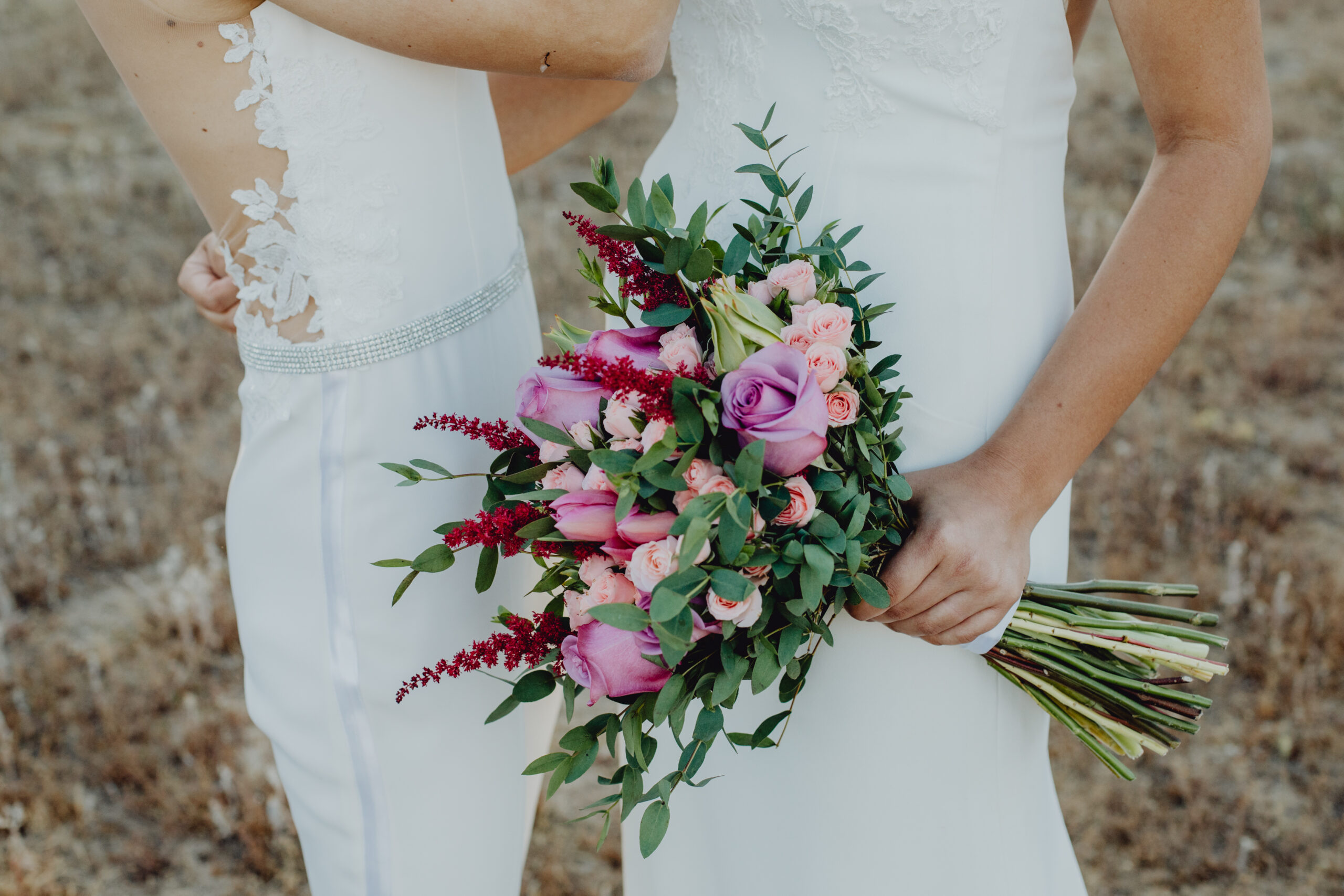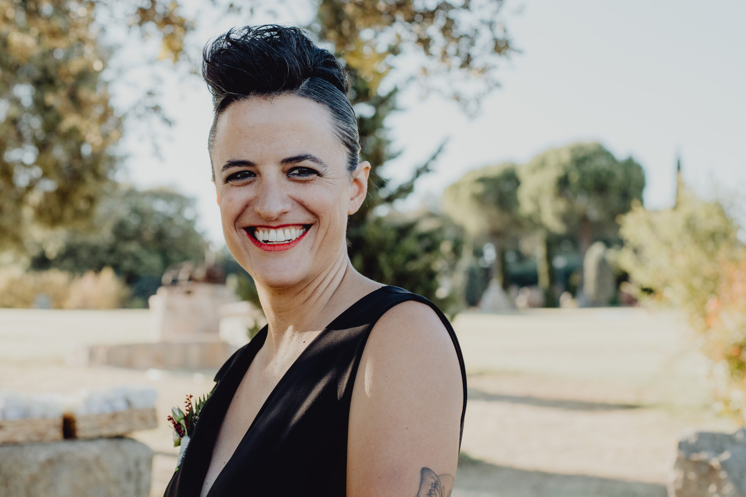 Si quieres ver lo re guapas que iban nuestras novias disfruta de sus fotos de boda. Una boda muy divertida, con música en vivo con sabor de los años ochenta en su fiesta, ritmos africanos en su cocktail y un precioso atardecer lleno de complicidad entre nuestras dos novias.