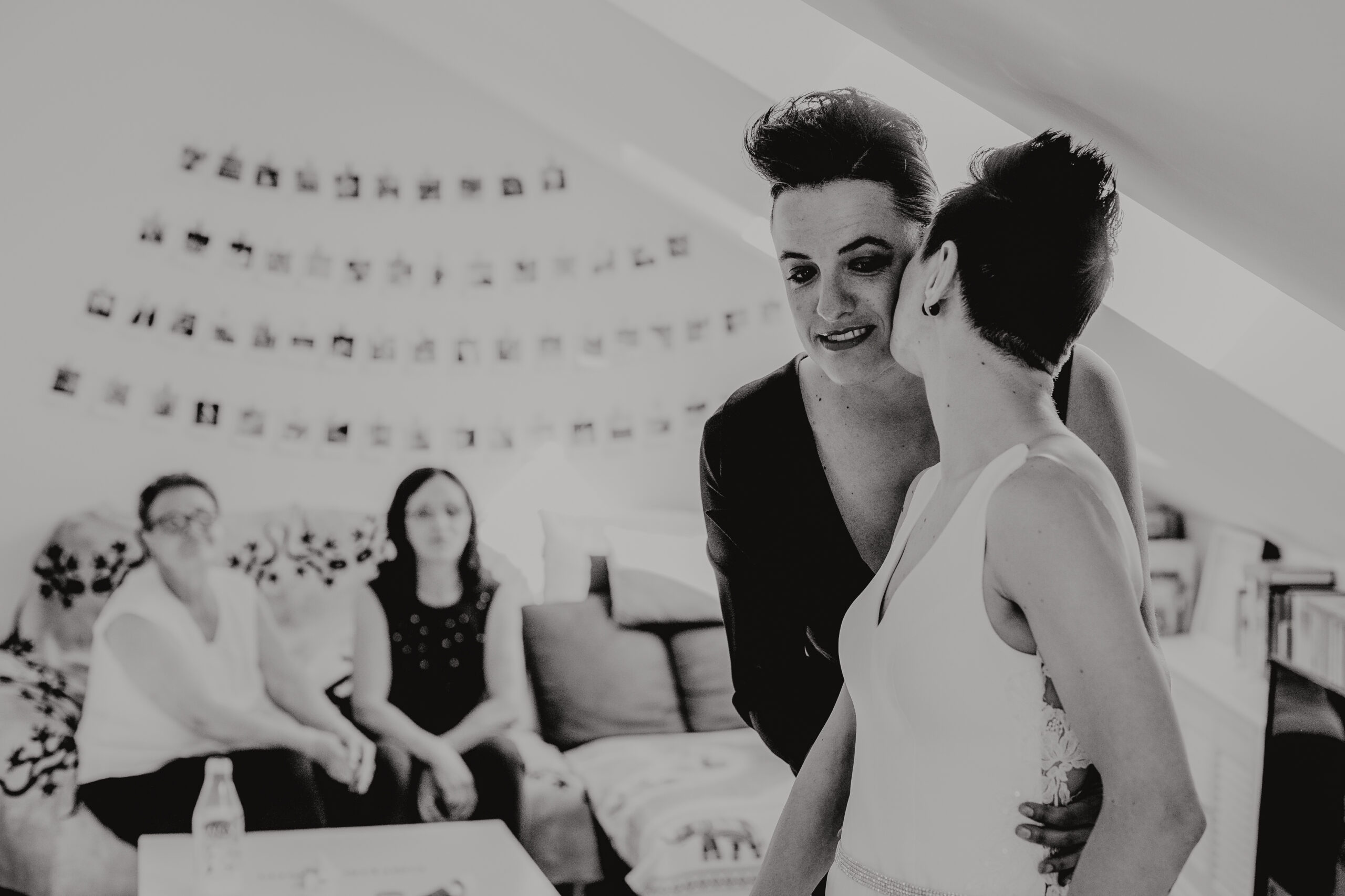 Silvia y Dana llevan 7 años juntas, se conocieron en un equipo de fútbol, y entrenamiento a entrenamiento… surgió el amor entre ellas. Desde entonces han formado un equipo inseparable junto a su perrita ALMA. Para ellas las tres forman la unión perfecta, así que en el día más importante de sus vidas, Alma no se lo podía perder. Eso sí, no sabemos cuál de las tres estaba más nerviosa. Claro,  que el papel de llevar las alianzas colgadas del cuello siendo un perro… era el papel más dificil. Ya que en responder Si Quiero la una a la otra no había ninguna duda. Dana ya dijo SÍ, cuando Silvia le pidió matrimonio a orillas de la playa santanderina.