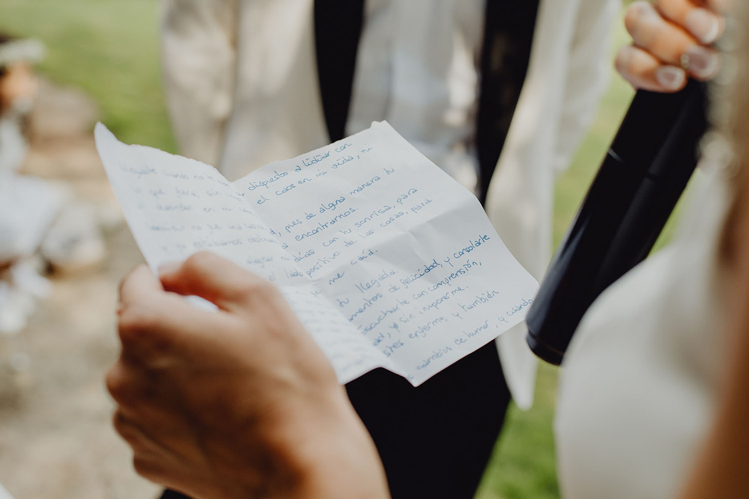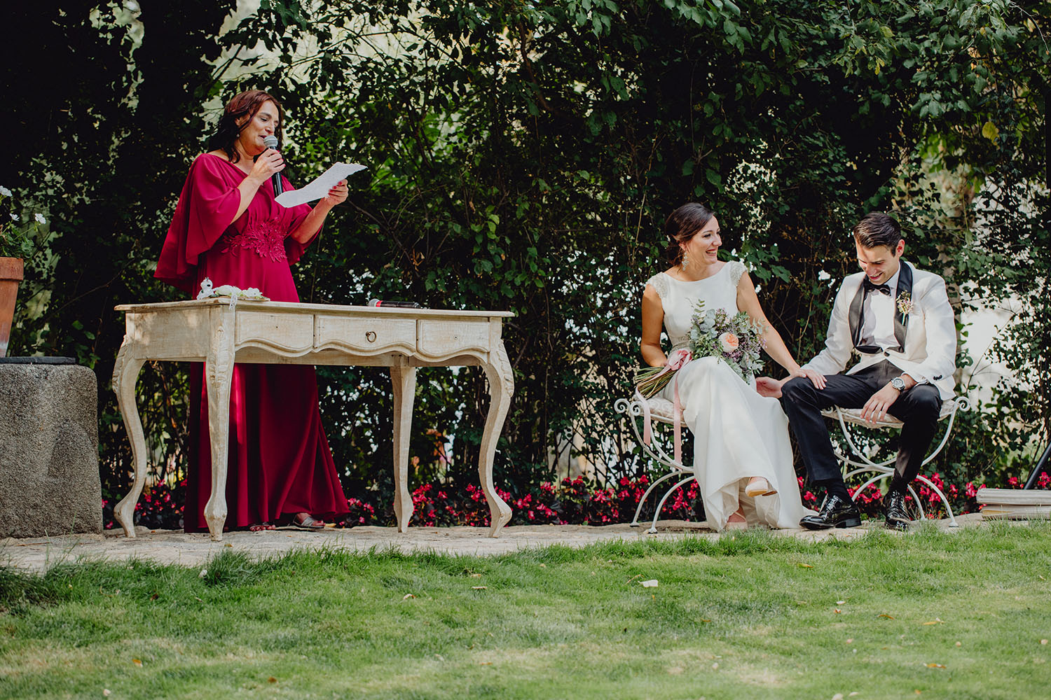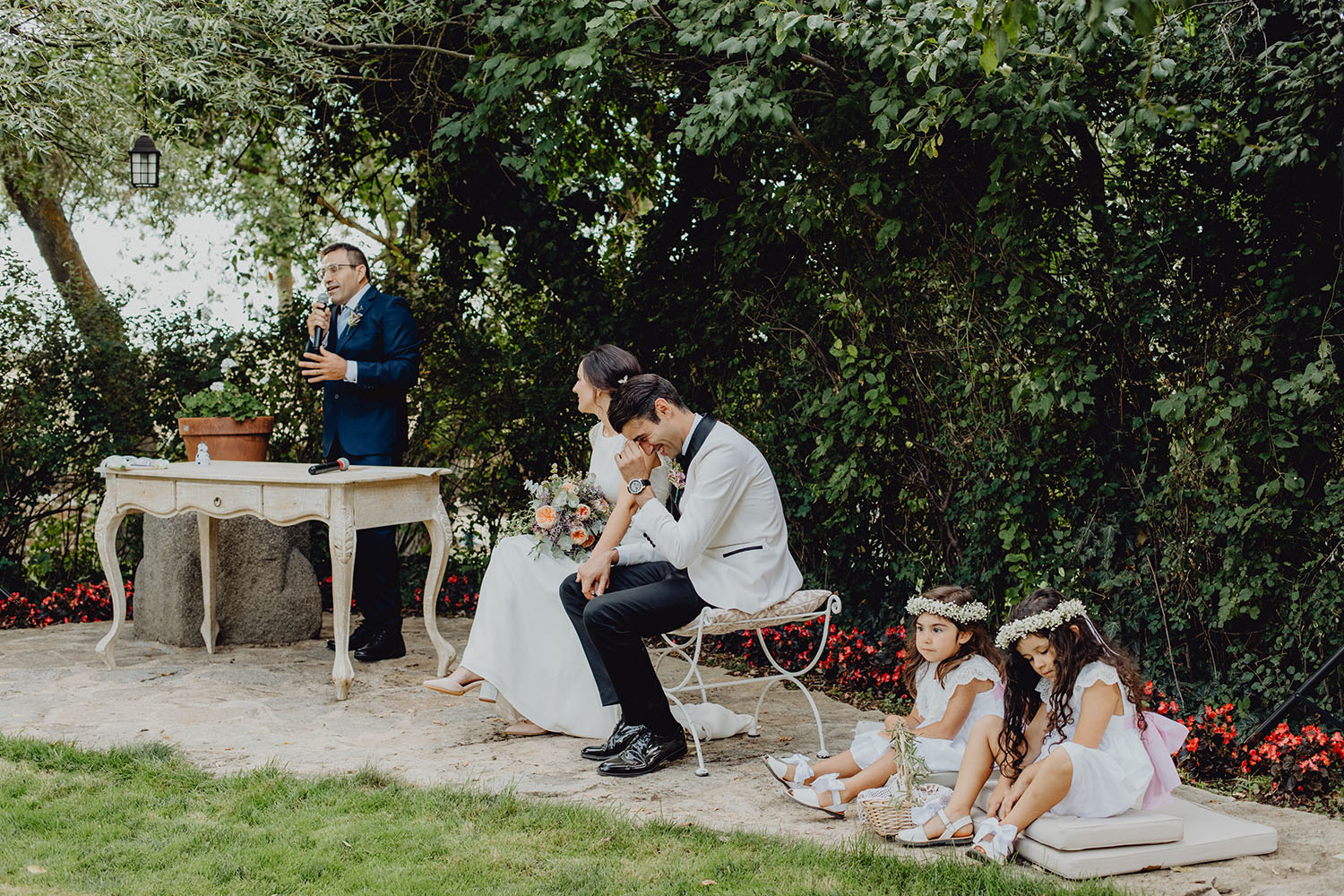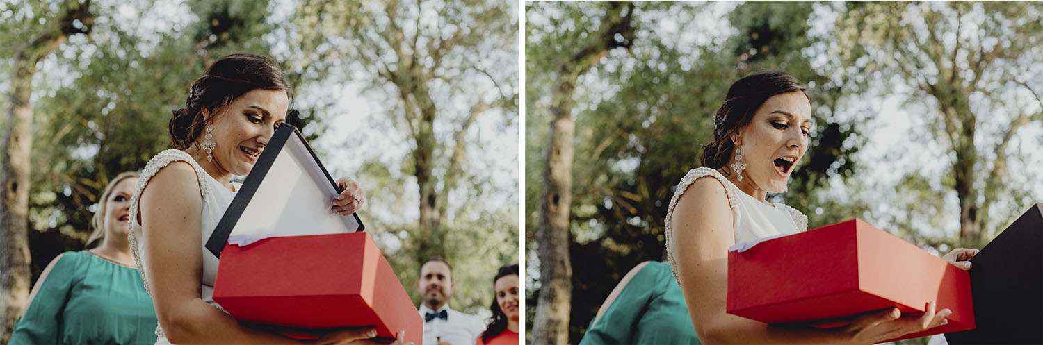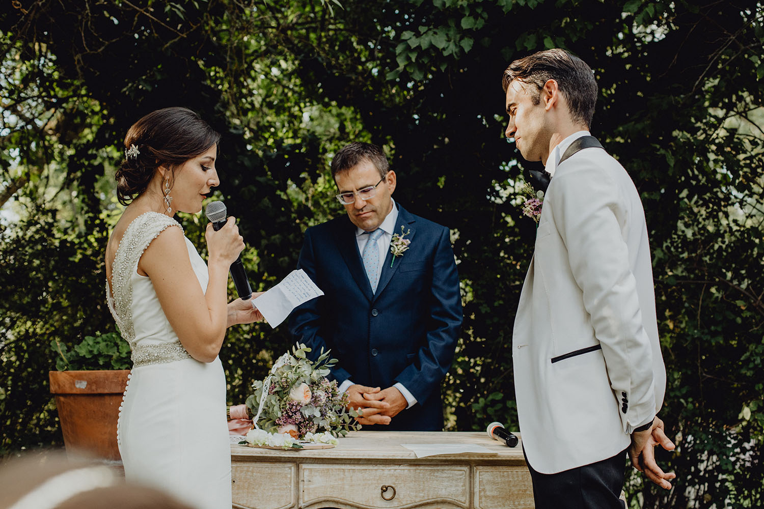 Tuvieron una ceremonia preciosa, oficiada por el tio y padrino de la novia. Muy emotiva, tanto cuando les dedicaron unas palabras la parte española como parte portuguesa, nos hicieron saltar las lagrimillas a nosotros y por supuesto a los invitados.