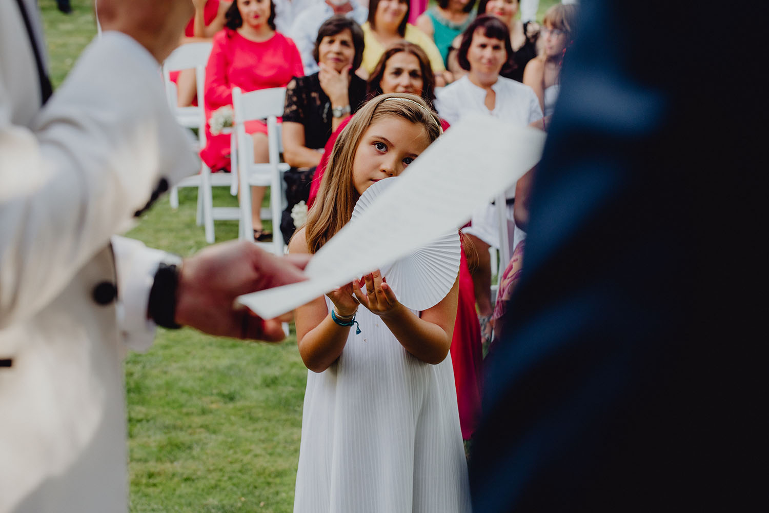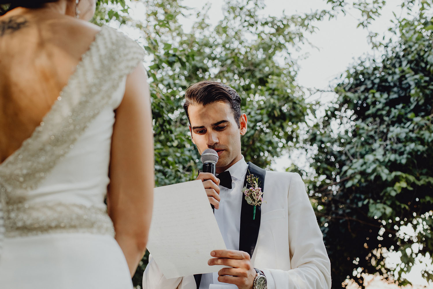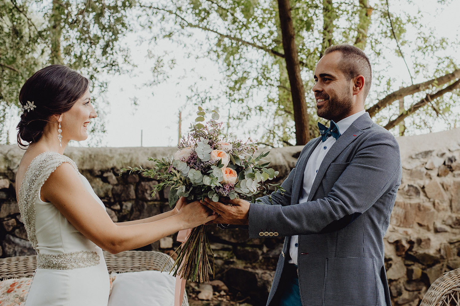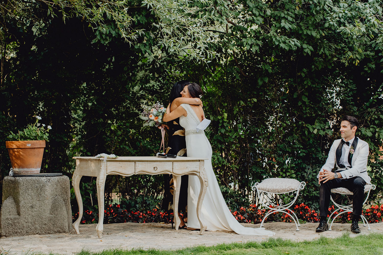 Tuvieron una ceremonia preciosa, oficiada por el tio y padrino de la novia. Muy emotiva, tanto cuando les dedicaron unas palabras la parte española como parte portuguesa, nos hicieron saltar las lagrimillas a nosotros y por supuesto a los invitados.