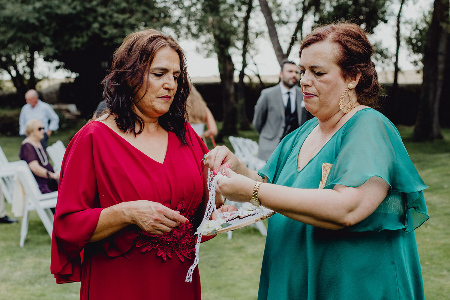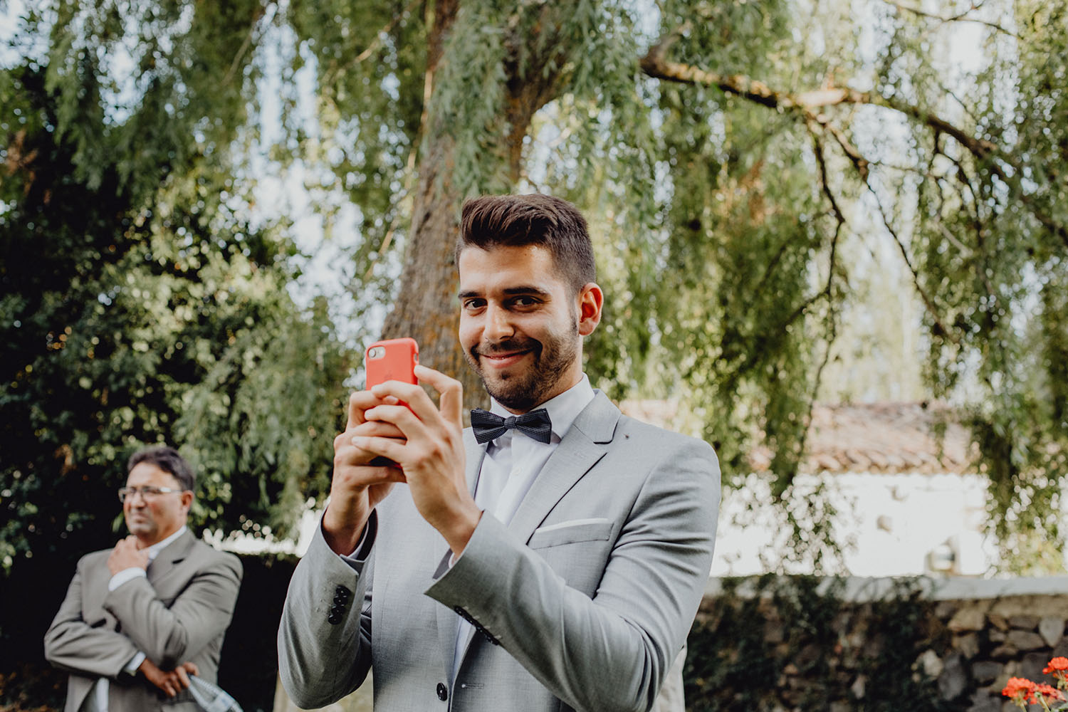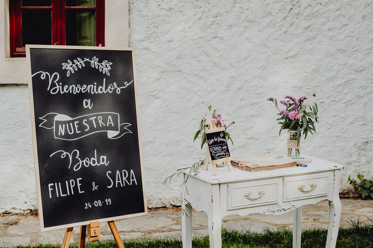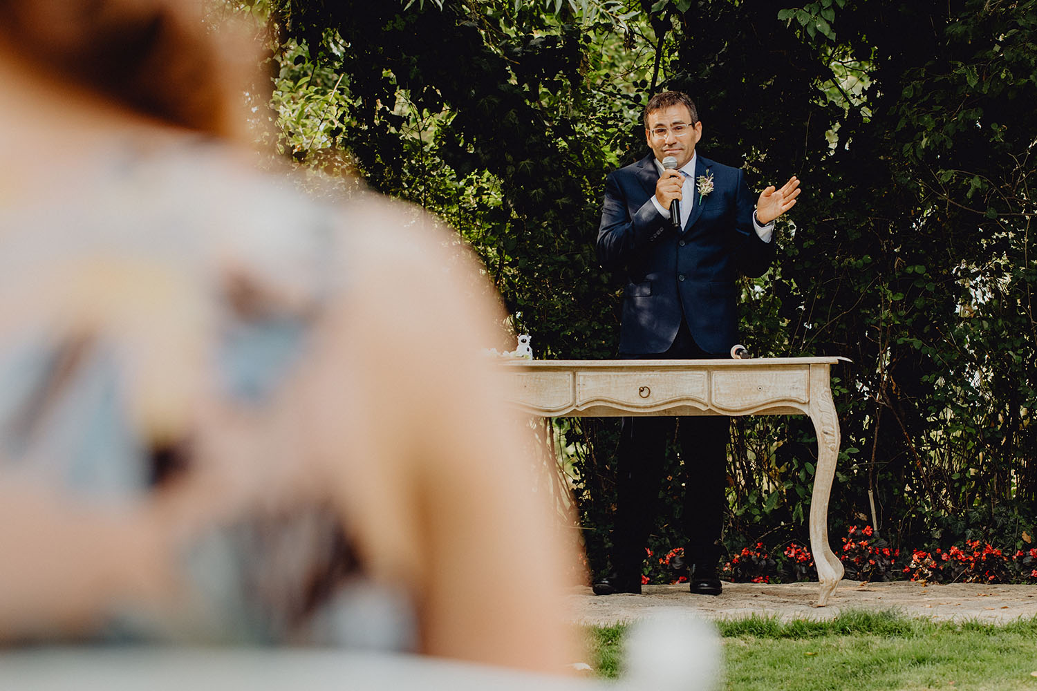 Tuvieron una ceremonia preciosa, oficiada por el tio y padrino de la novia. Muy emotiva, tanto cuando les dedicaron unas palabras la parte española como parte portuguesa, nos hicieron saltar las lagrimillas a nosotros y por supuesto a los invitados.