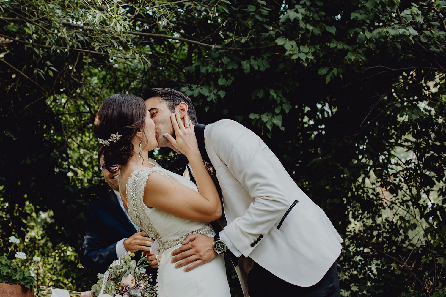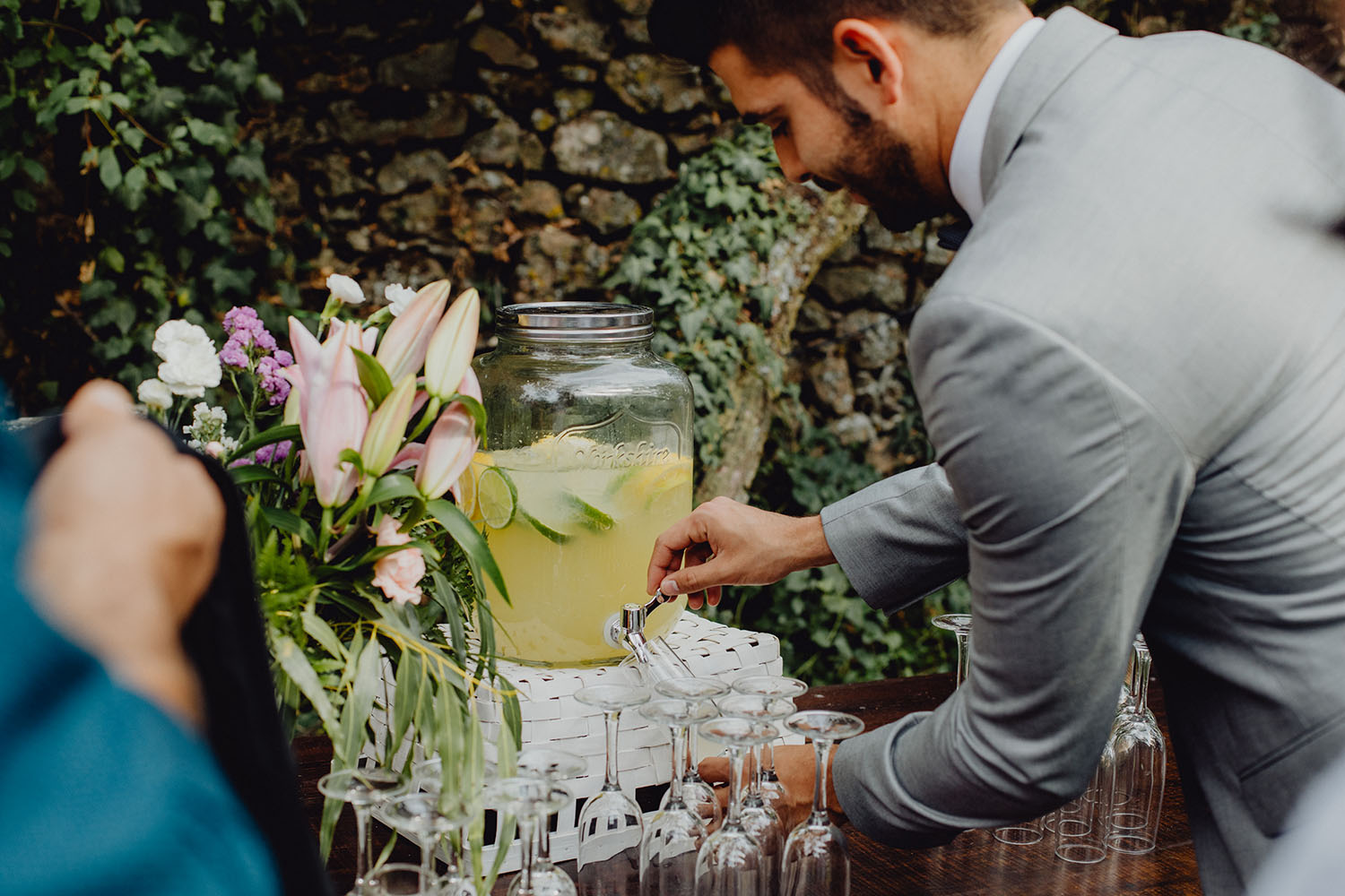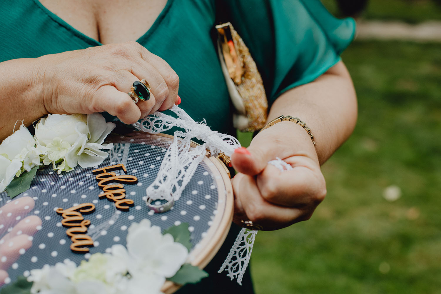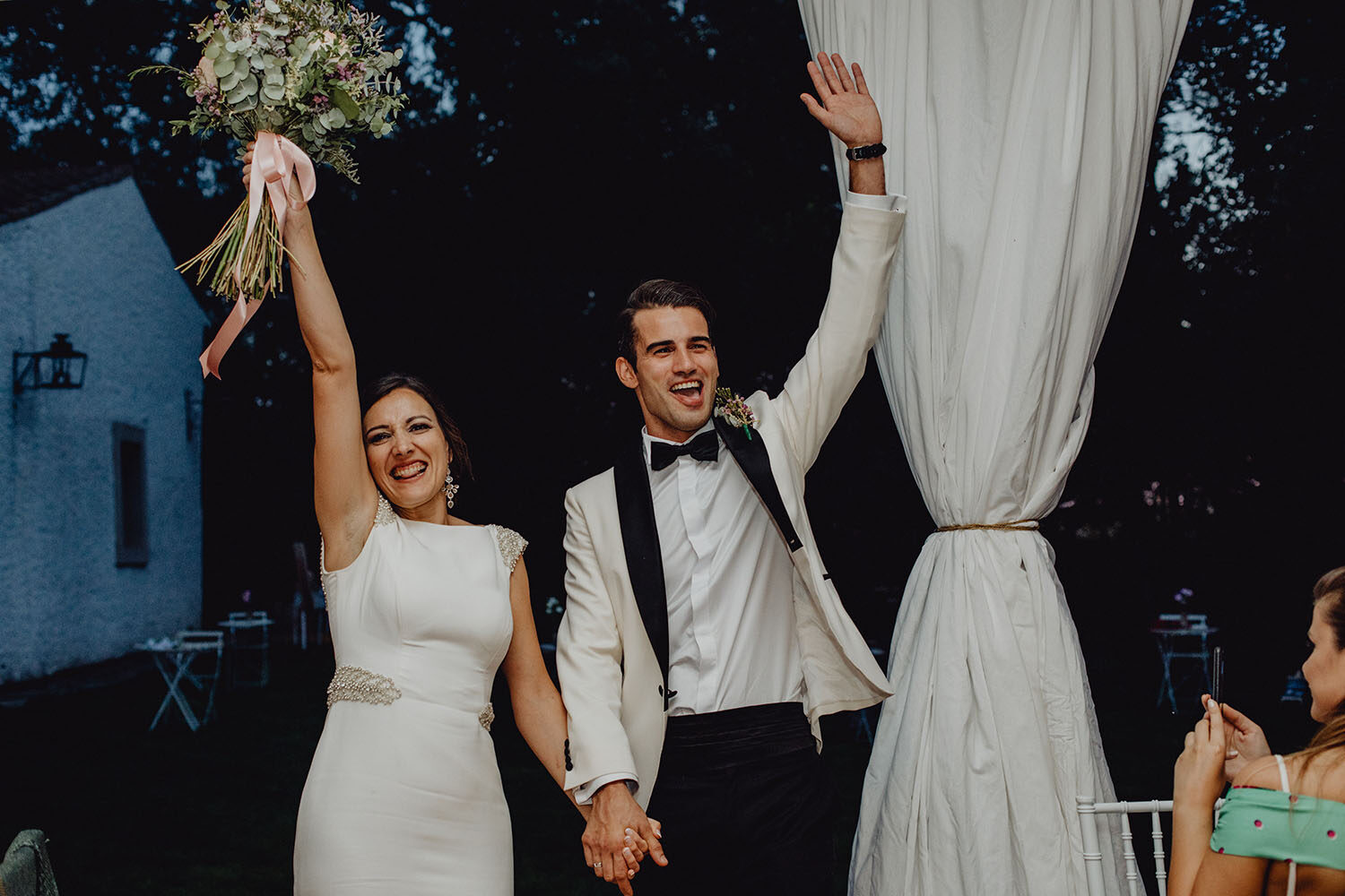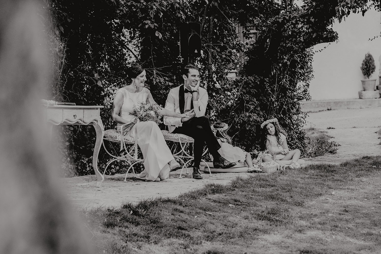 Tuvieron una ceremonia preciosa, oficiada por el tio y padrino de la novia. Muy emotiva, tanto cuando les dedicaron unas palabras la parte española como parte portuguesa, nos hicieron saltar las lagrimillas a nosotros y por supuesto a los invitados.