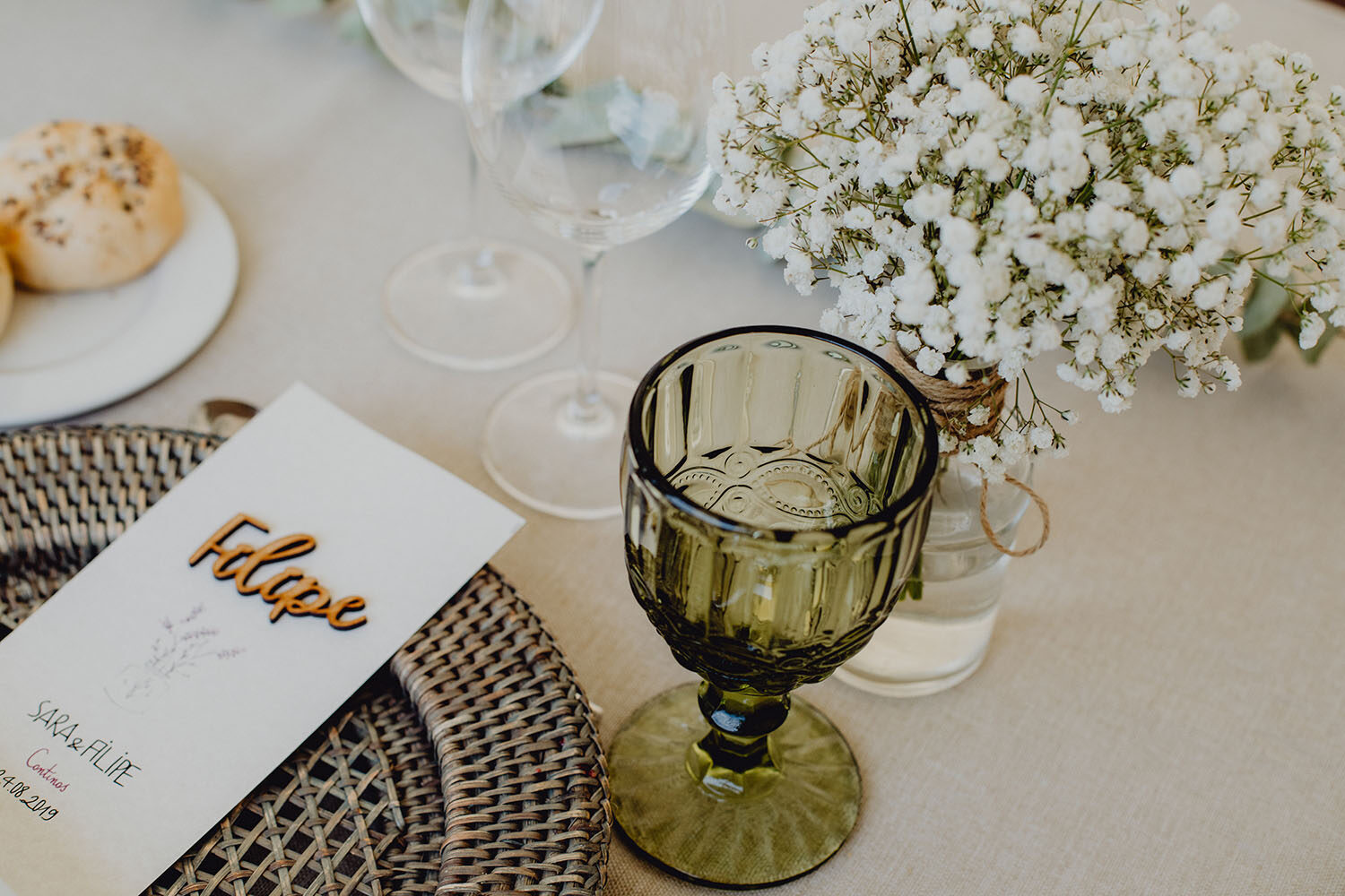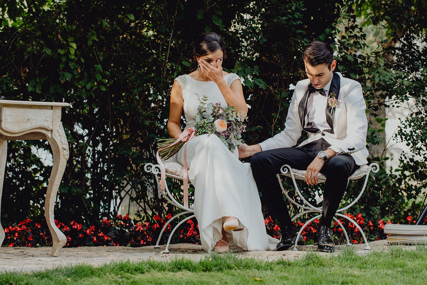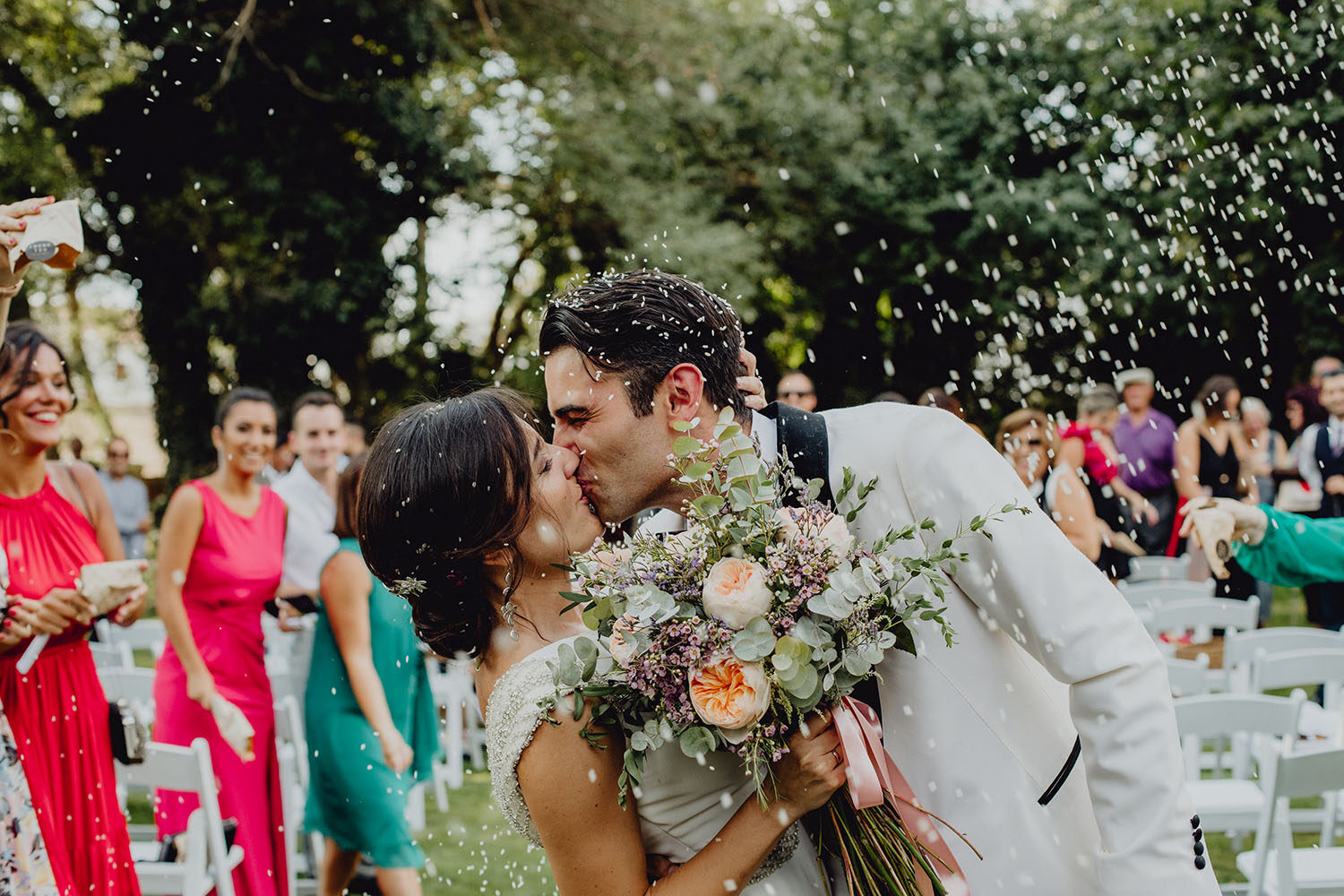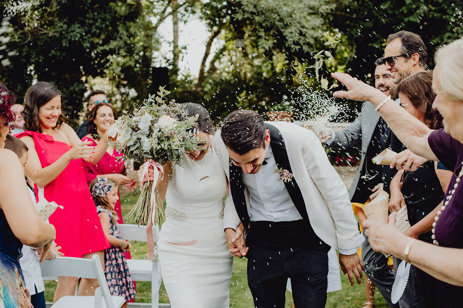 Tuvieron una ceremonia preciosa, oficiada por el tio y padrino de la novia. Muy emotiva, tanto cuando les dedicaron unas palabras la parte española como parte portuguesa, nos hicieron saltar las lagrimillas a nosotros y por supuesto a los invitados.