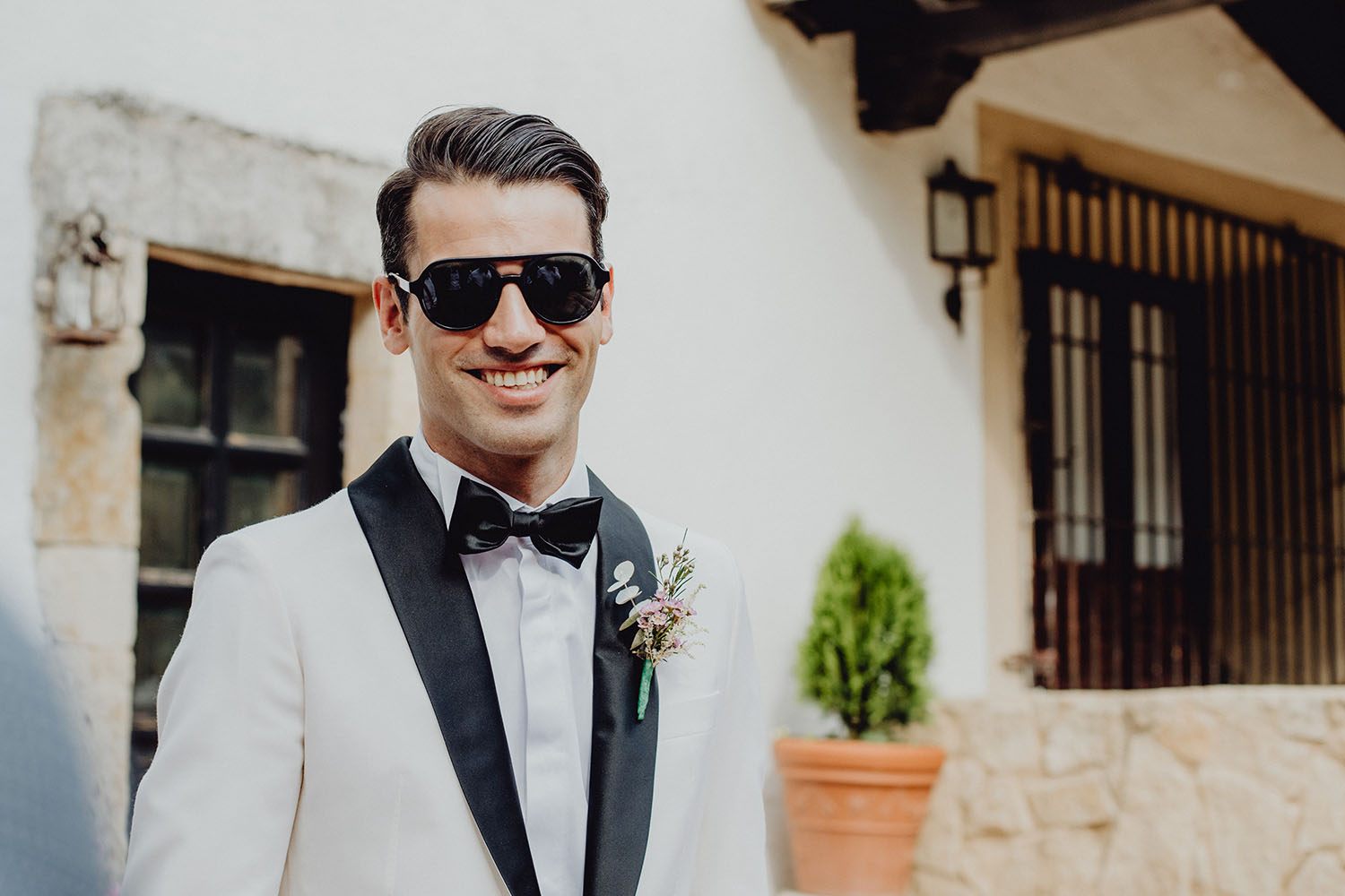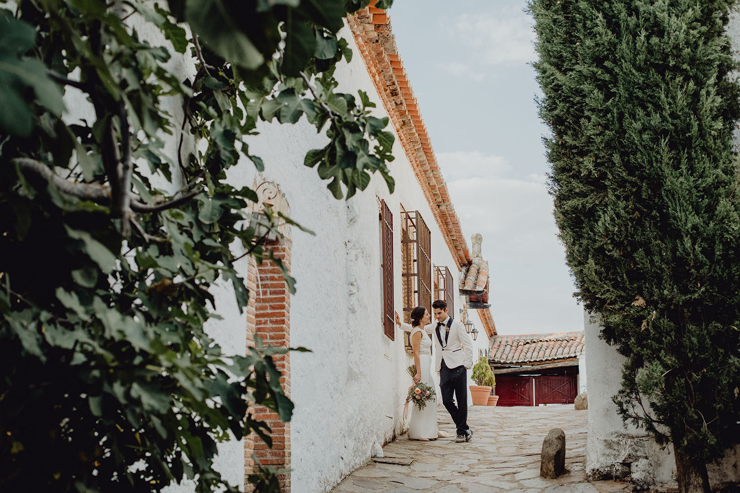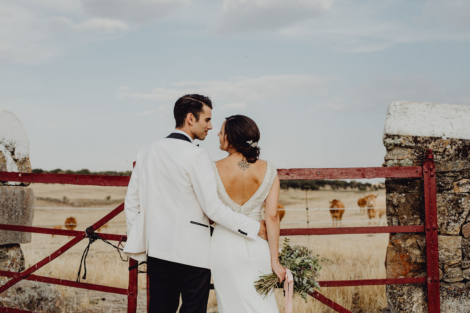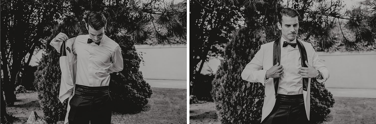 La boda la han realizado en España, concretamente en la Finca Continos en Salamanca. Los preparativos del novio los hicimos en el Hotel Horus en Salamanca, donde nos alojabámos todos, fotógrafos, novios y los invitados. Una gozada para ellos vivir esas horas antes de la boda en compañia de los suyos, disfrutando de la piscina del hotel. La novia realizó sus preparativos en la propia finca. Una pasada de lugar, nos encantó. No te imaginas que en mitad de la carretera, adentrandote por un camino rodeado de vacas aparezca ante ti esta preciosa finca rural, y tan cerquita a la vez del centro de la ciudad de Salamanca.