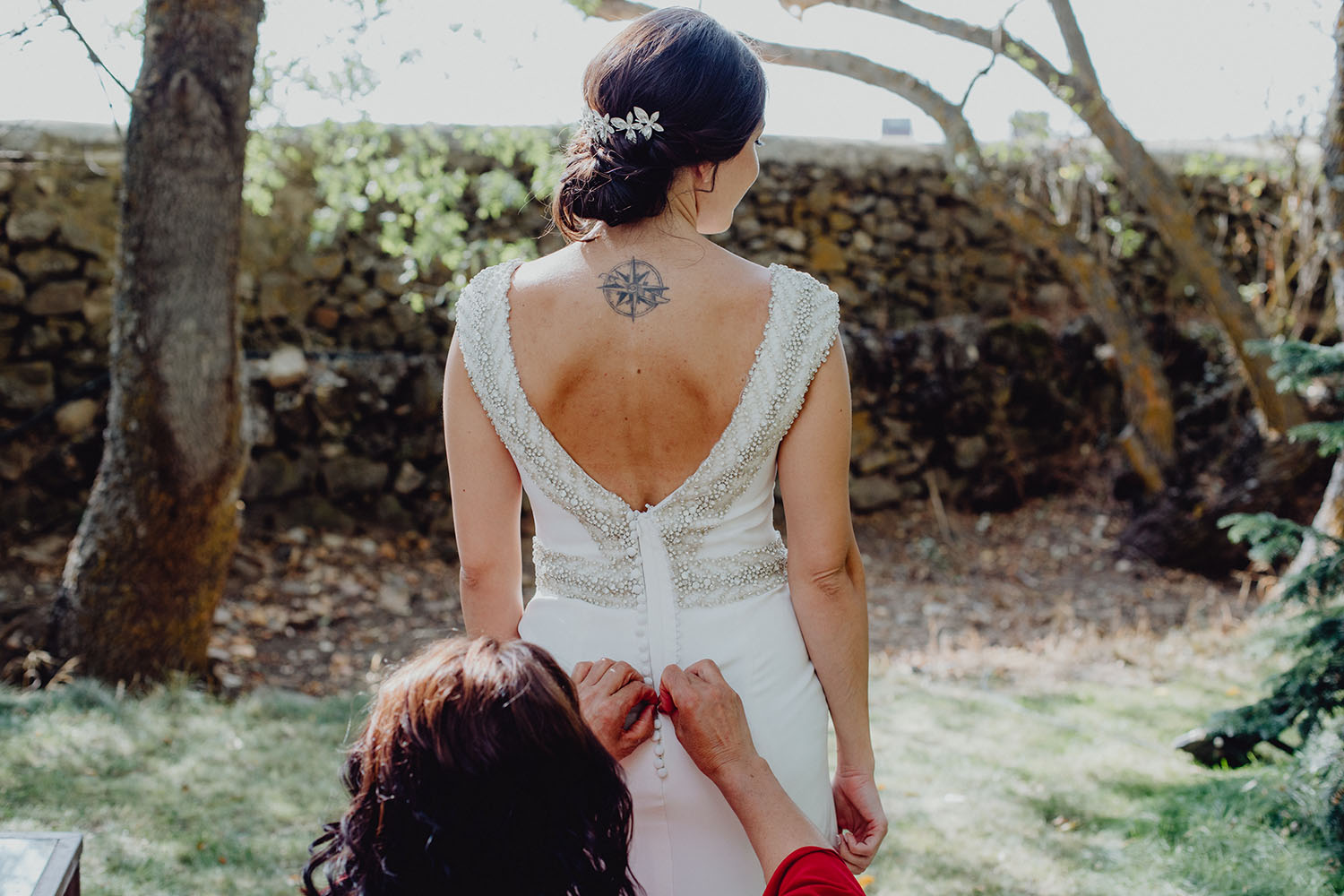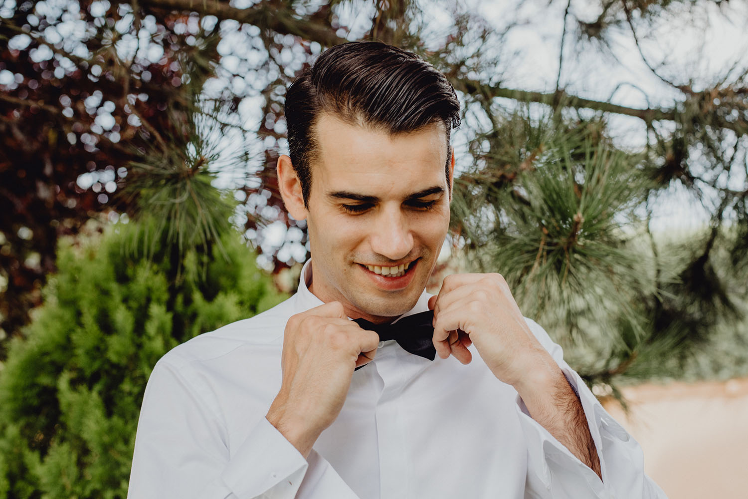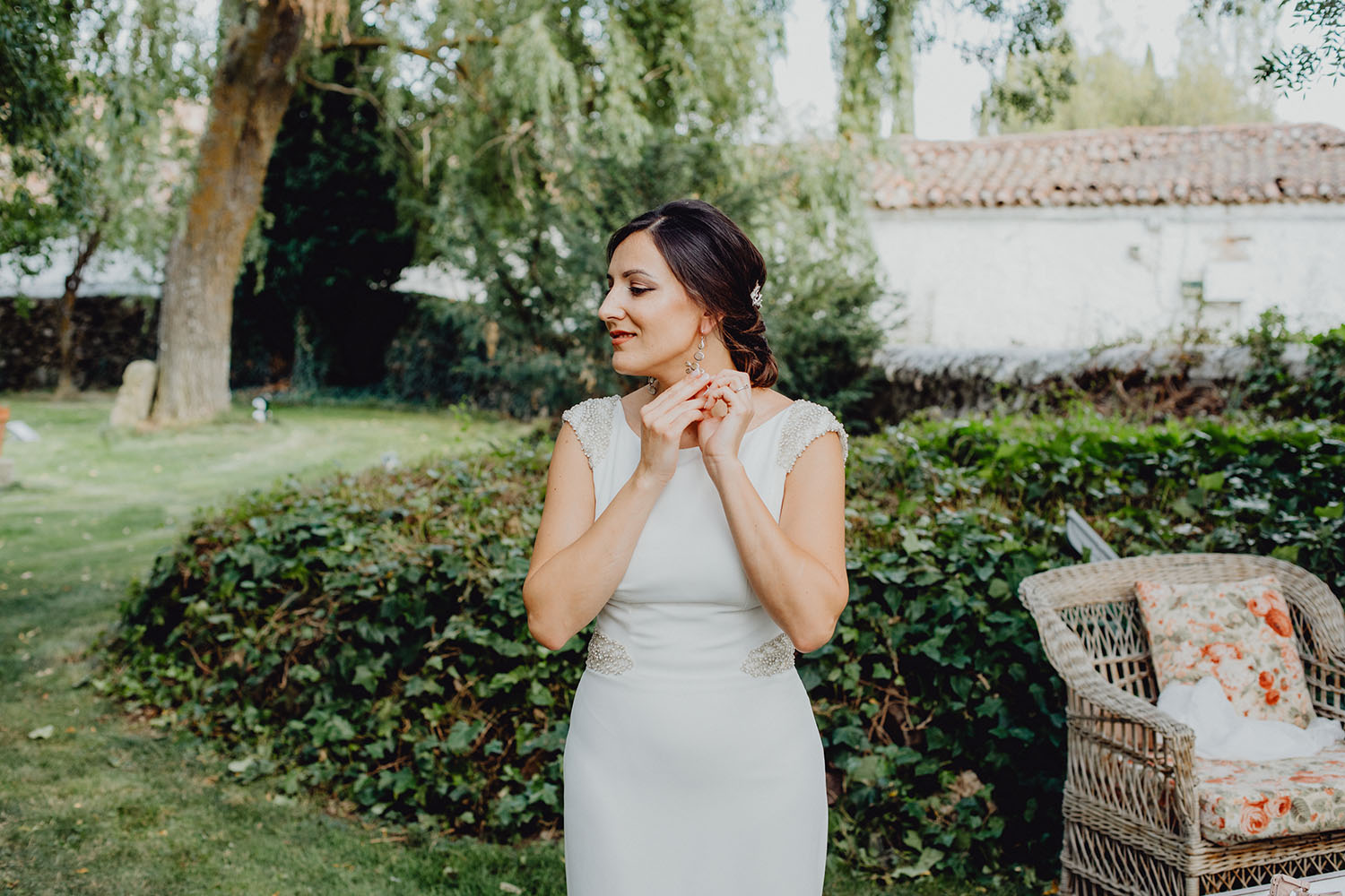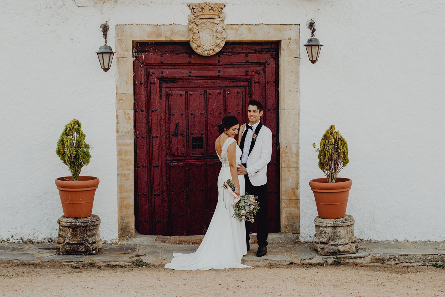 La boda la han realizado en España, concretamente en la Finca Continos en Salamanca. Los preparativos del novio los hicimos en el Hotel Horus en Salamanca, donde nos alojabámos todos, fotógrafos, novios y los invitados. Una gozada para ellos vivir esas horas antes de la boda en compañia de los suyos, disfrutando de la piscina del hotel. La novia realizó sus preparativos en la propia finca. Una pasada de lugar, nos encantó. No te imaginas que en mitad de la carretera, adentrandote por un camino rodeado de vacas aparezca ante ti esta preciosa finca rural, y tan cerquita a la vez del centro de la ciudad de Salamanca.