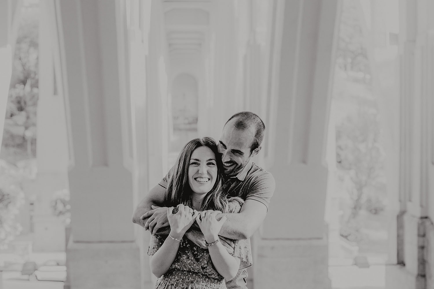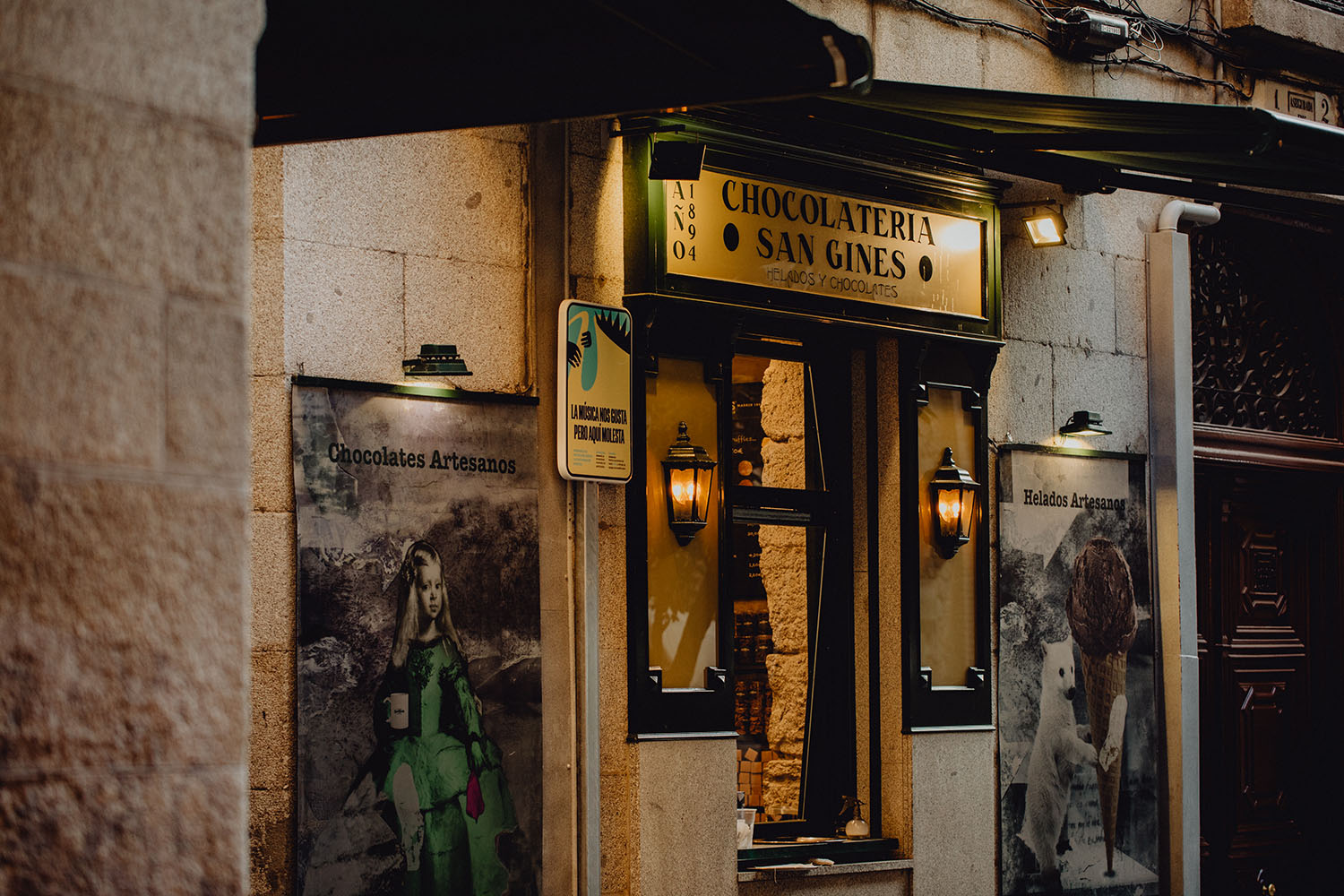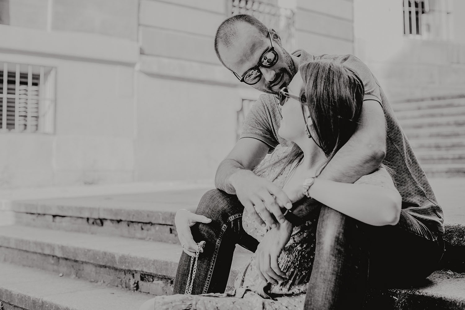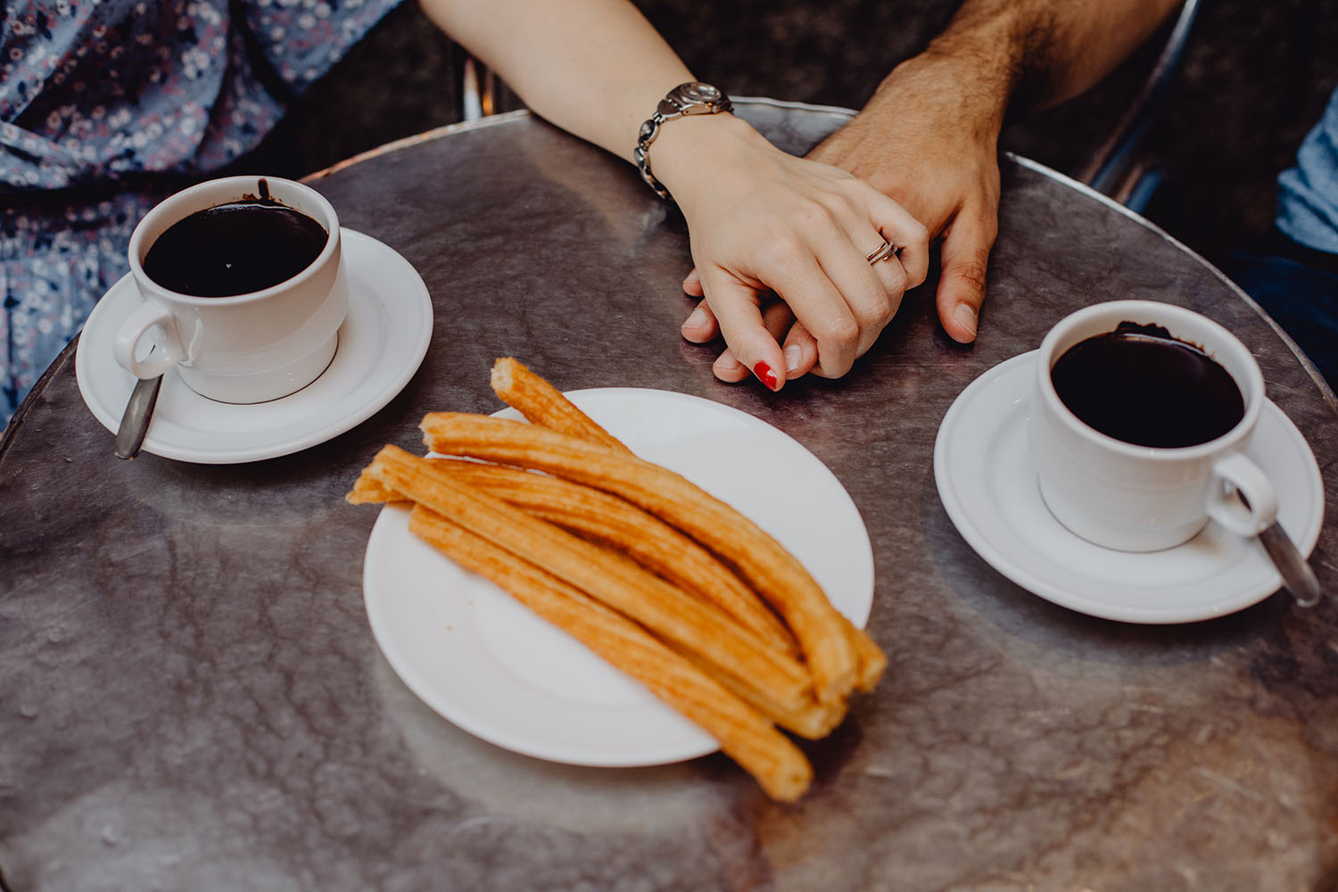 Nos reunimos con ellos en La Escalera de Bailén junto a la Fuente de los Caños Viejos, en La Latina. Y allí empezó la mágia de su preboda bajo el Viaducto de Segovia. Continuamos hasta llegar al 15 de Cuchilleros, un lugar con historia que tras cinco generaciones es la barbería más antigua de Madrid. Los novios nos sorprenderion con un fantásico baile en plena Plaza Mayor. Nos dejaron con la boca abierta a nosotros, y a todos los turistas que pasaban por ahí. Nuestros pasos nos llevaron hasta otra parada mitica, La Chocolatería San Ginés, un clásico. Con el estómago lleno y el corazón caliente, nos vamos a Sol, con parada obligatoria en el kilometro cero, de donde parten todas las seis carreteras nacionales de España. Y por fin, La Torre El Carrion con su super cinematografico cartel luminoso de Schweppes.