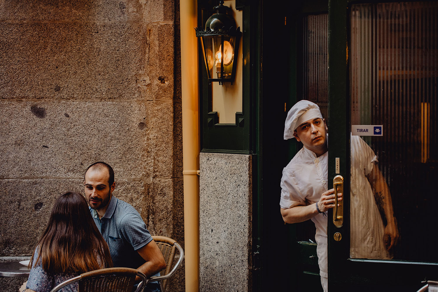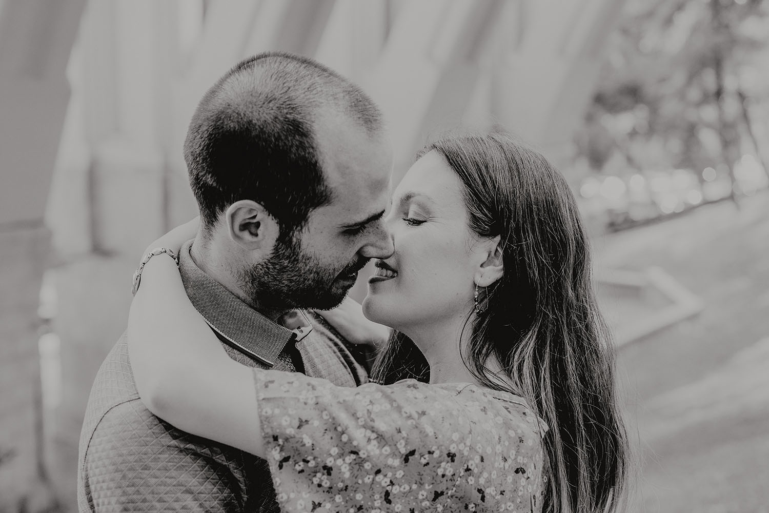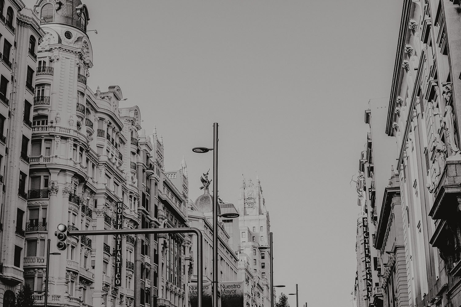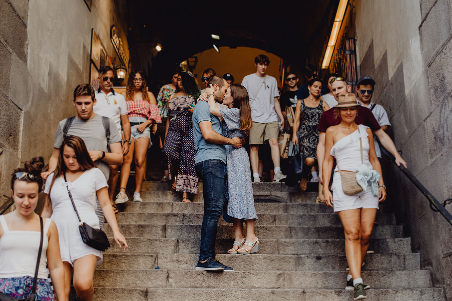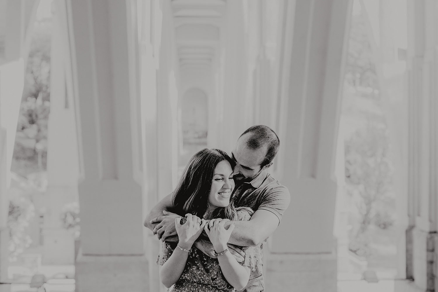 Nos reunimos con ellos en La Escalera de Bailén junto a la Fuente de los Caños Viejos, en La Latina. Y allí empezó la mágia de su preboda bajo el Viaducto de Segovia. Continuamos hasta llegar al 15 de Cuchilleros, un lugar con historia que tras cinco generaciones es la barbería más antigua de Madrid. Los novios nos sorprenderion con un fantásico baile en plena Plaza Mayor. Nos dejaron con la boca abierta a nosotros, y a todos los turistas que pasaban por ahí. Nuestros pasos nos llevaron hasta otra parada mitica, La Chocolatería San Ginés, un clásico. Con el estómago lleno y el corazón caliente, nos vamos a Sol, con parada obligatoria en el kilometro cero, de donde parten todas las seis carreteras nacionales de España. Y por fin, La Torre El Carrion con su super cinematografico cartel luminoso de Schweppes.
