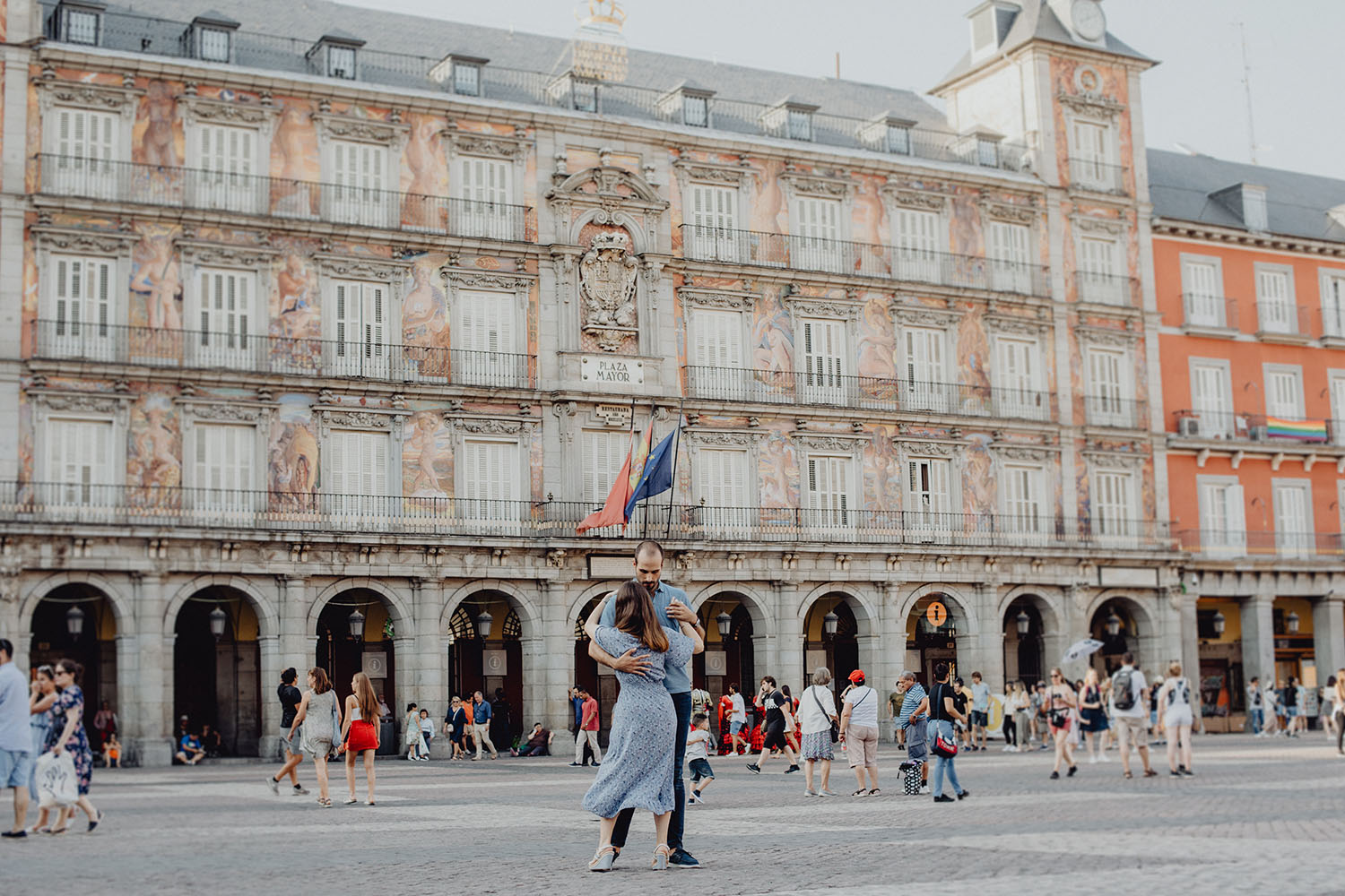 Madrid, la ciudad a la que le han dedicado tantas canciones. Recorrer sus calles siempre es un buen plan. Pablo y Tamara querían su preboda en algunos de los rincones más emblemáticos de la ciudad. Así que les preparamos un recorrido castizo por la parte centro de Madrid.