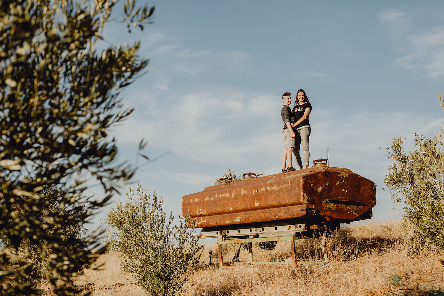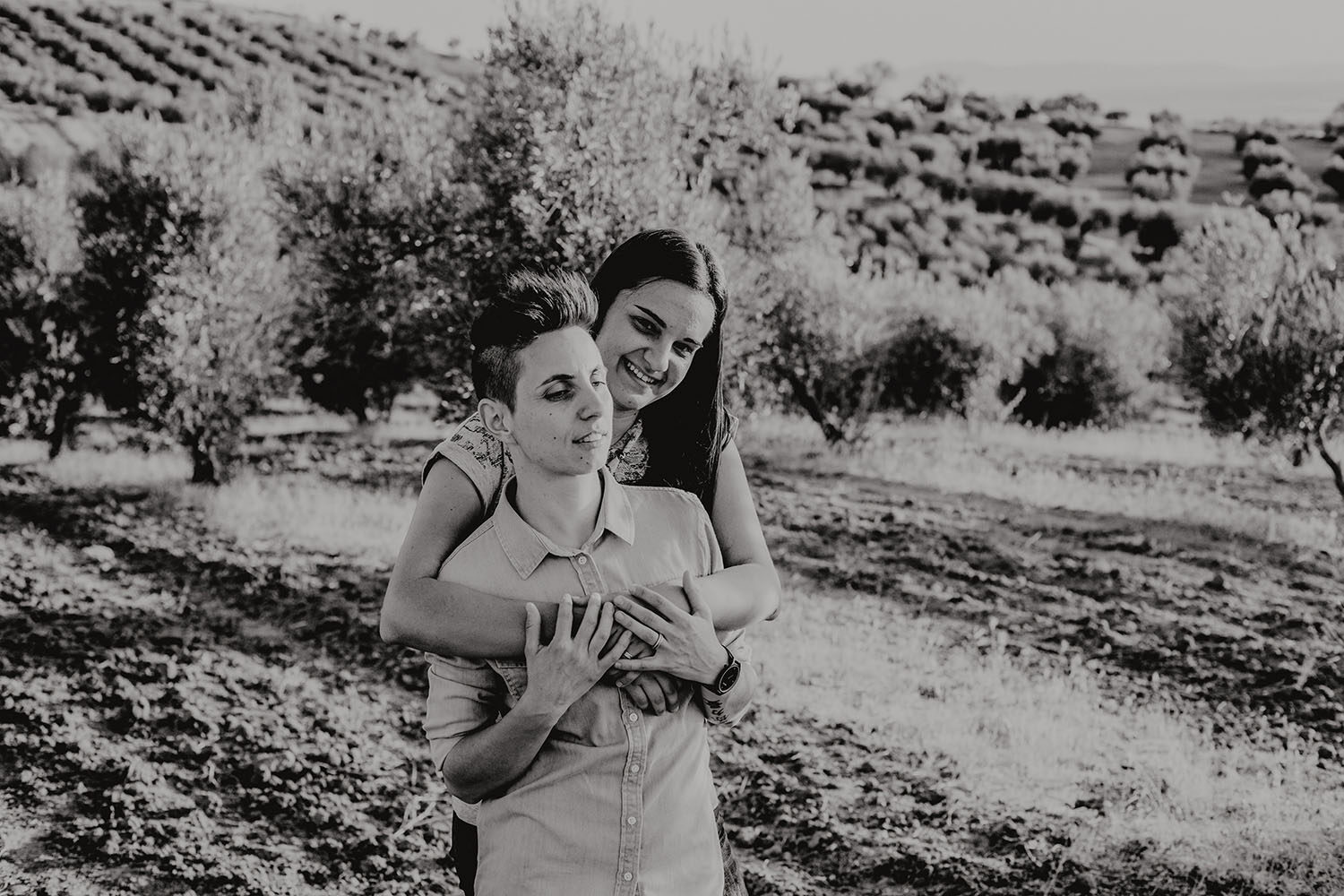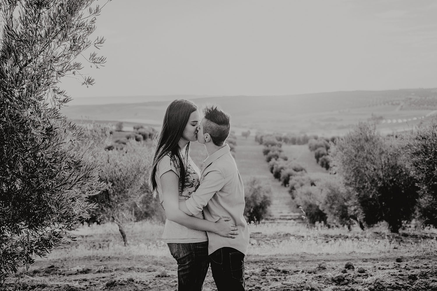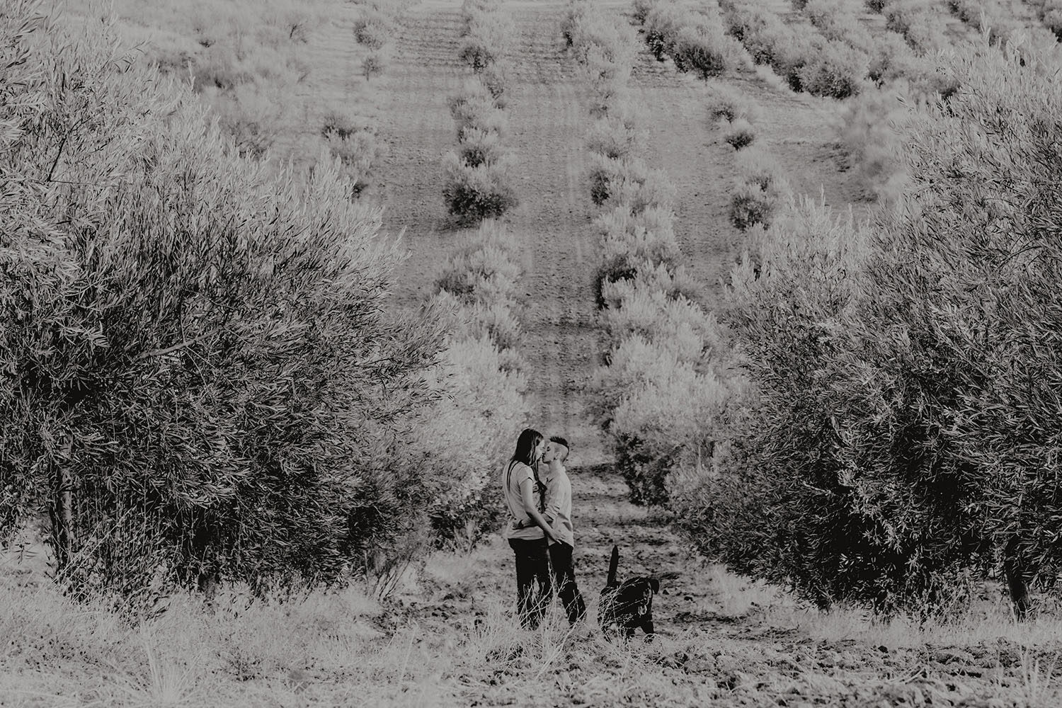 Al caer la tarde, llevamos a Silvia y a Dana a un lugar escondido, entre un campo de olivos. Una maravillosa forma de terminar la sesión de fotos y despedirnos de un día mágico.