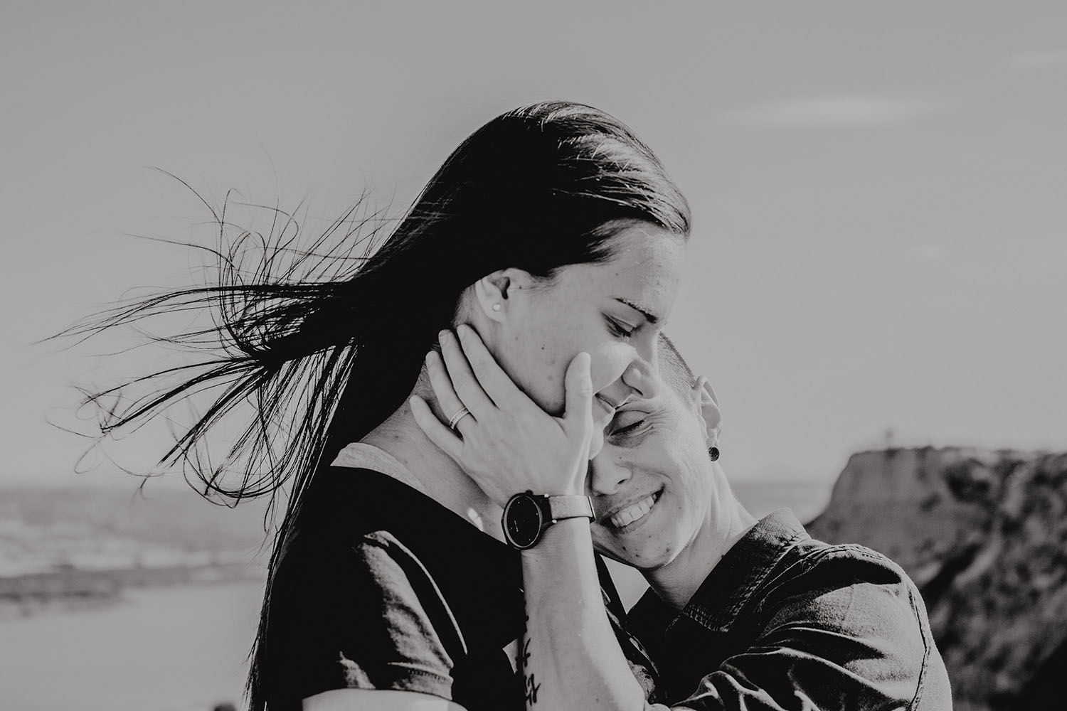 Con ellas inauguramos la temporada de Prebodas de este año. Cuando hicimos el reportaje aún hacía un poquito de solete, que se echa de menos con ésta ola de frío que esta habiendo estos días. No obstante, el viento se hacía notar junto a los preciosos acantilados. Ver el pelo de Silvia volar al viento nos ensancha el alma.