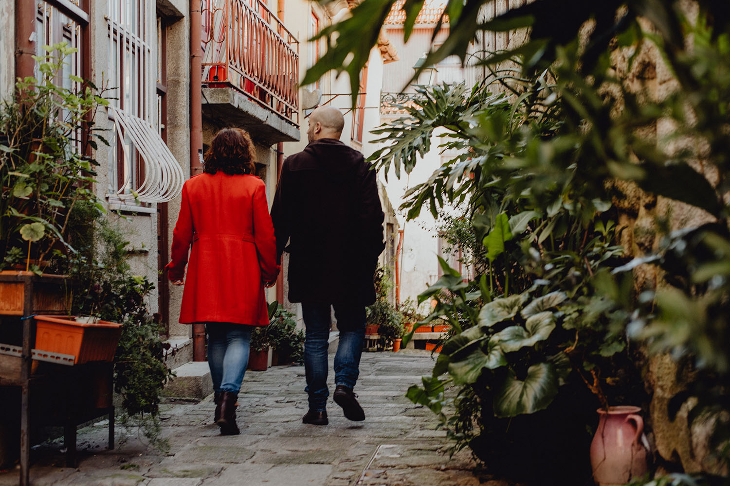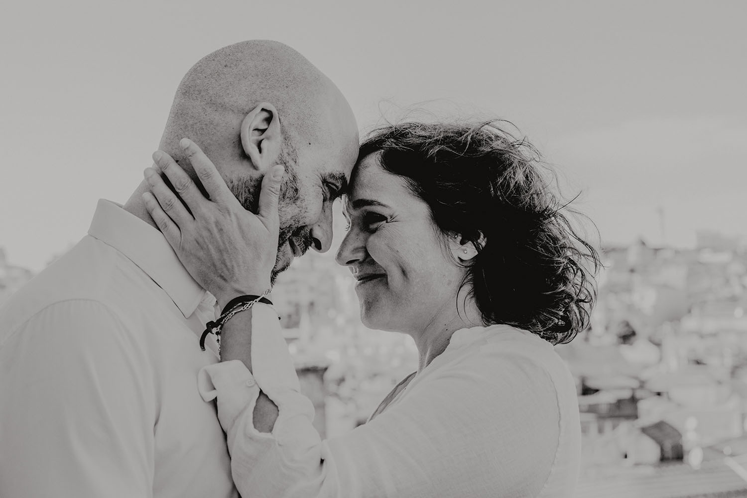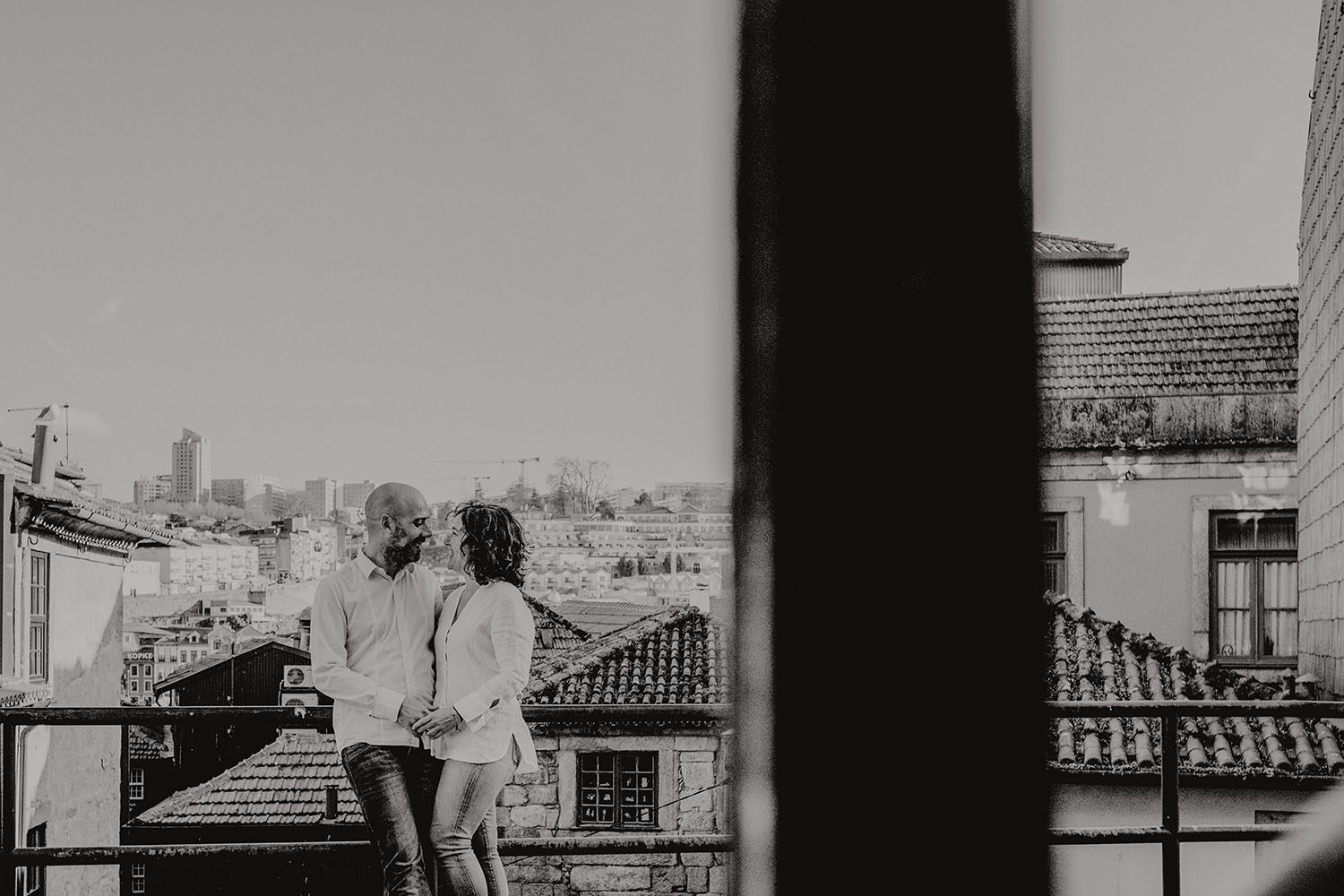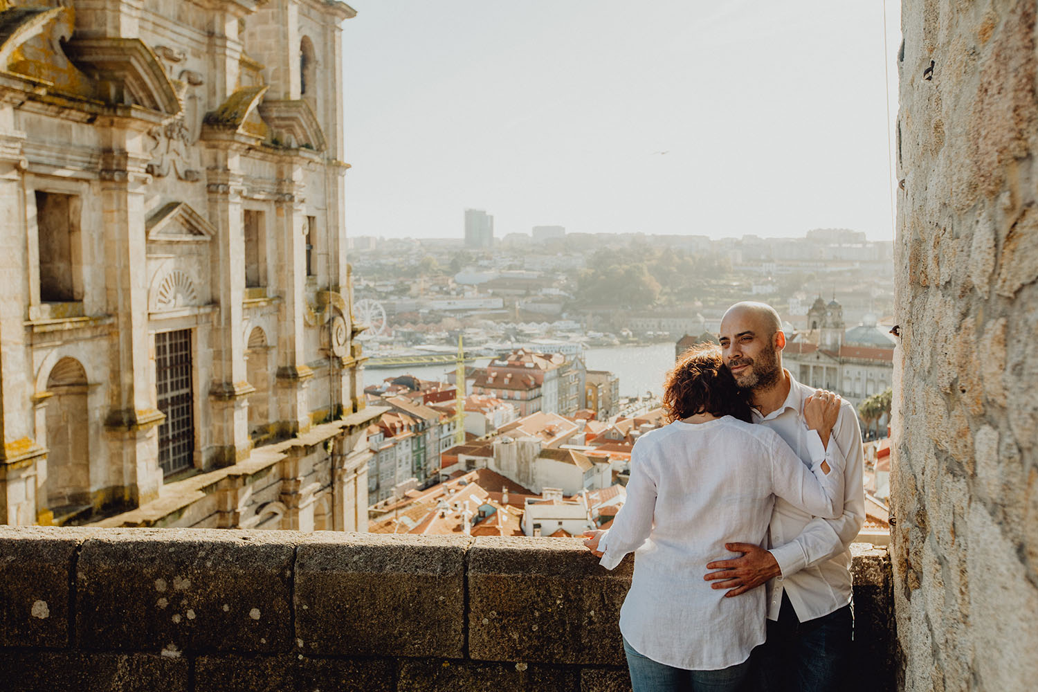 Por el momento, no tienen planes de boda, cuando se enteraron por las redes sociales que Fotógrafo Artístico iba a estar en Portugal haciendo el preboda a otra pareja, no dudaron en contactar con nosotros y contratar el reportaje de pareja urban. Les apetecía mucho tener un reportaje de fotos en Oporto, la ciudad que tan feliz les hace. Para nosotros fue una suerte poder conocer la ciudad de su mano. Su reportaje de fotos comenzó en la Estación de Sao Bento, y podemos decir que es una de las estaciones más hermosas que hayamos conocido. Continuamos caminando a la Catedral Sé do Oporto, hasta que nuestros pasos nos llevaron por sus callejuelas, tejados en los que crece la hierba, la ropa tendida en los balcones, las plantas en las puertas, sin duda es una ciudad de contrastes. Te sorprende con sus pintadas, graffitis y como no, por sus preciosos azulejos que no te dejaran indiferentes en fachadas como la de la Capilla de las Almas. Pasear por la Ribeira, llena de vida, de música, de su gente, sus gaviotas…y disfrutar de las vistas de la ciudad desde los diferentes miradores. Ver a Salu y Mauricio, comerse a besos y reirse juntos con esa complicidad, es enarmorarse un poquito también de ellos y por supuesto enamorarse de Oporto hasta las trancas!