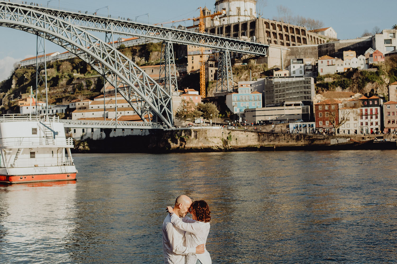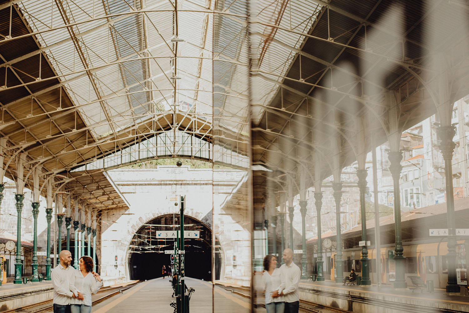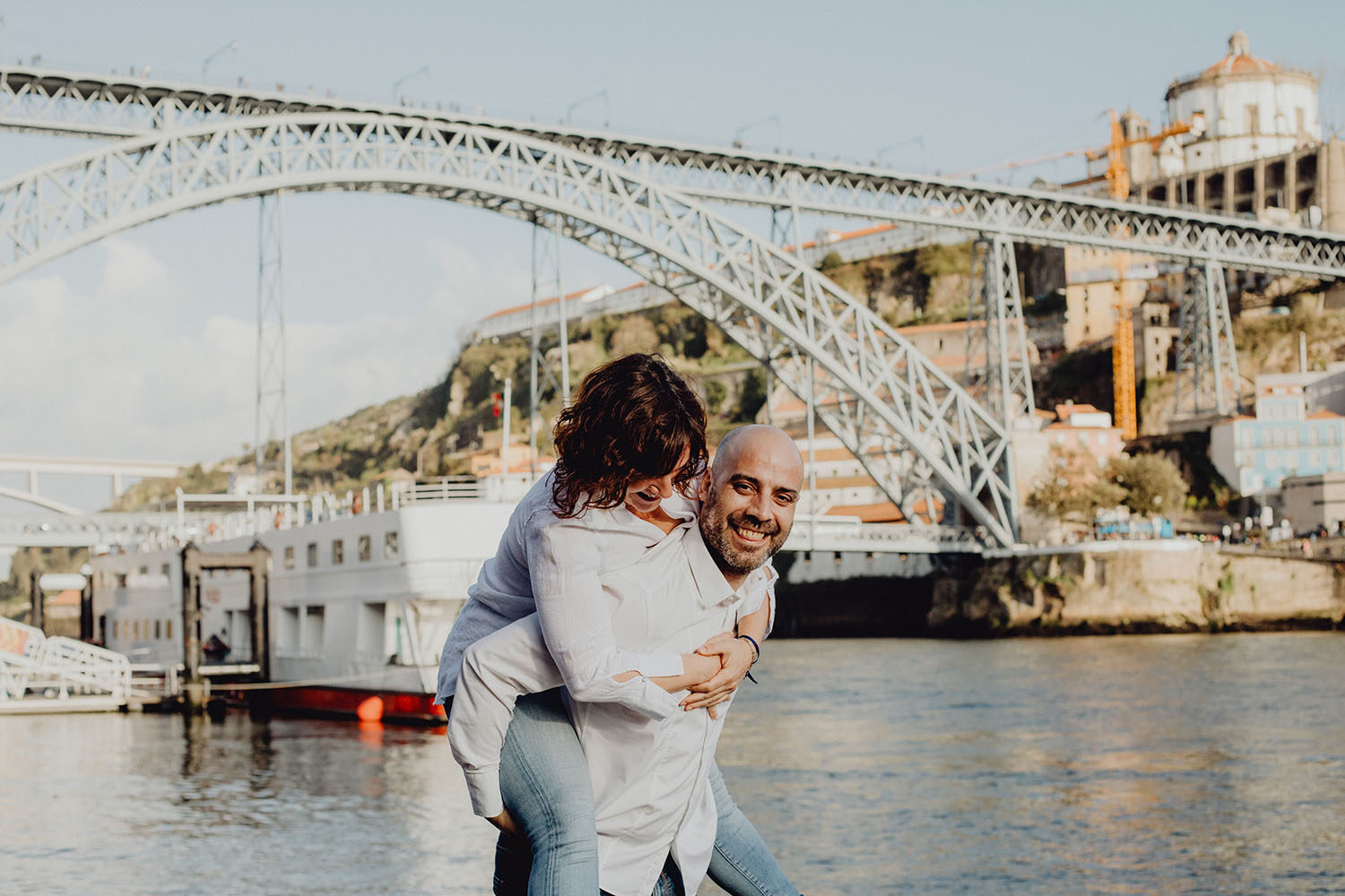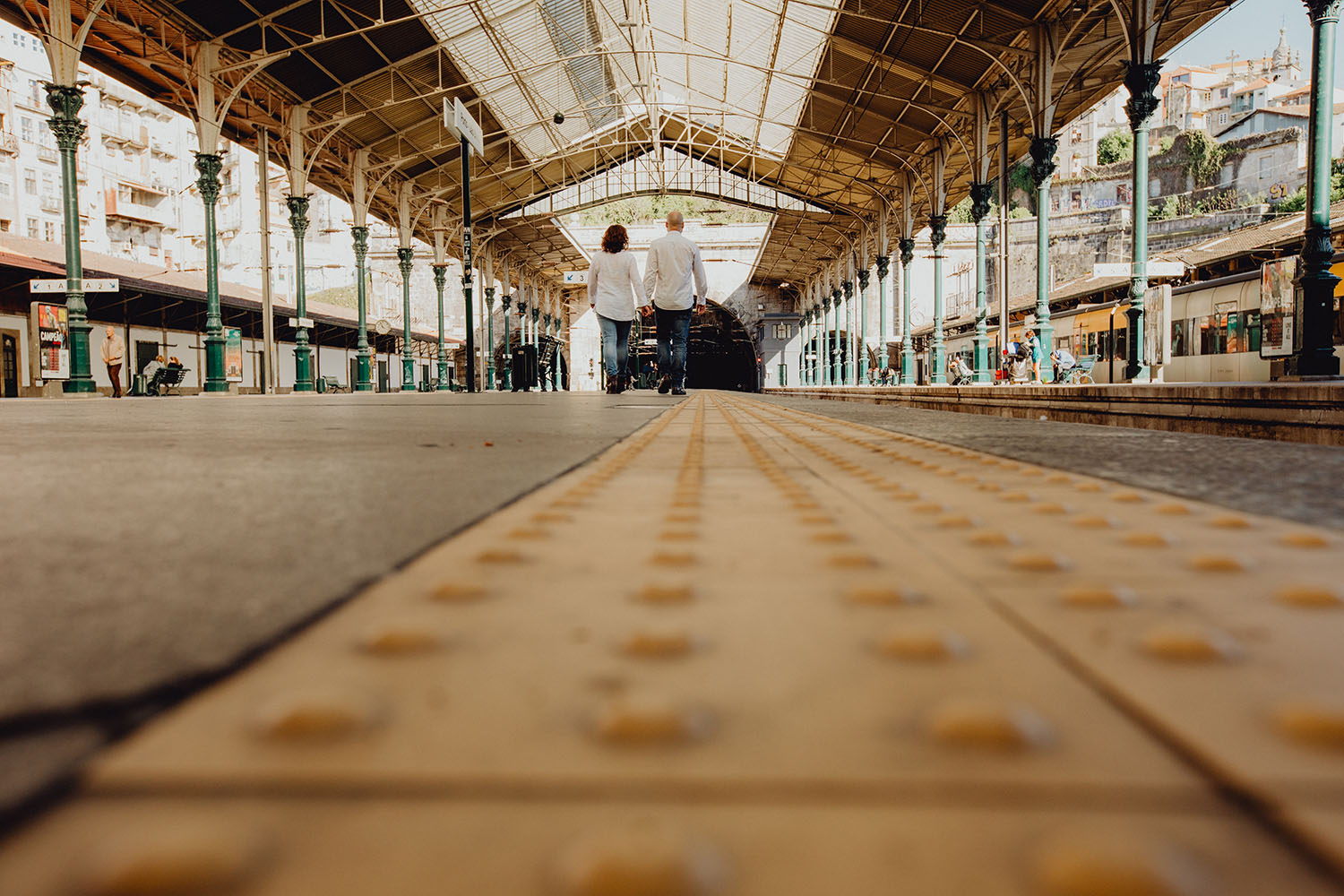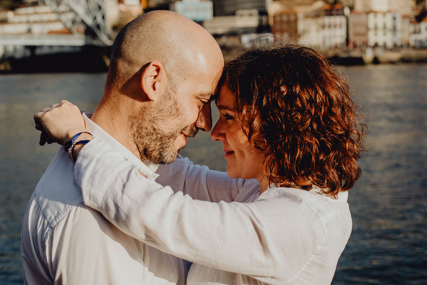 Por el momento, no tienen planes de boda, cuando se enteraron por las redes sociales que Fotógrafo Artístico iba a estar en Portugal haciendo el preboda a otra pareja, no dudaron en contactar con nosotros y contratar el reportaje de pareja urban. Les apetecía mucho tener un reportaje de fotos en Oporto, la ciudad que tan feliz les hace. Para nosotros fue una suerte poder conocer la ciudad de su mano. Su reportaje de fotos comenzó en la Estación de Sao Bento, y podemos decir que es una de las estaciones más hermosas que hayamos conocido. Continuamos caminando a la Catedral Sé do Oporto, hasta que nuestros pasos nos llevaron por sus callejuelas, tejados en los que crece la hierba, la ropa tendida en los balcones, las plantas en las puertas, sin duda es una ciudad de contrastes. Te sorprende con sus pintadas, graffitis y como no, por sus preciosos azulejos que no te dejaran indiferentes en fachadas como la de la Capilla de las Almas. Pasear por la Ribeira, llena de vida, de música, de su gente, sus gaviotas…y disfrutar de las vistas de la ciudad desde los diferentes miradores. Ver a Salu y Mauricio, comerse a besos y reirse juntos con esa complicidad, es enarmorarse un poquito también de ellos y por supuesto enamorarse de Oporto hasta las trancas!