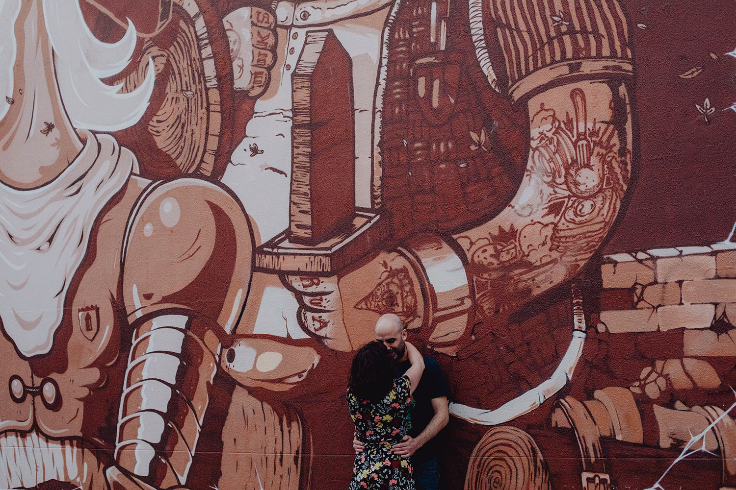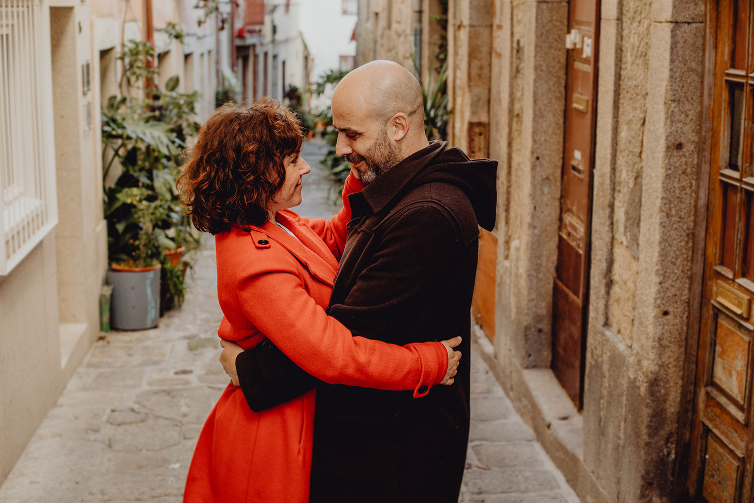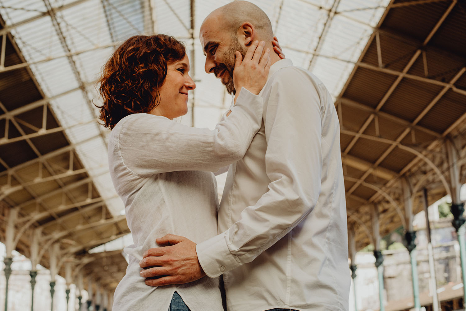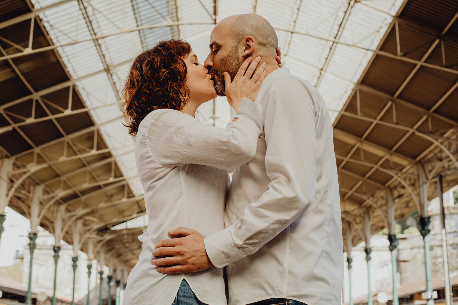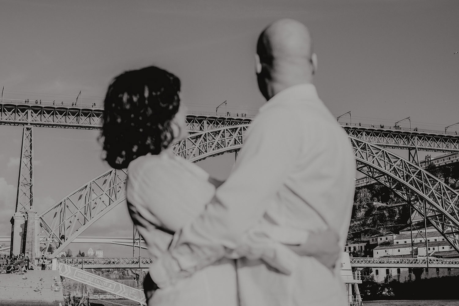 Por el momento, no tienen planes de boda, cuando se enteraron por las redes sociales que Fotógrafo Artístico iba a estar en Portugal haciendo el preboda a otra pareja, no dudaron en contactar con nosotros y contratar el reportaje de pareja urban. Les apetecía mucho tener un reportaje de fotos en Oporto, la ciudad que tan feliz les hace. Para nosotros fue una suerte poder conocer la ciudad de su mano. Su reportaje de fotos comenzó en la Estación de Sao Bento, y podemos decir que es una de las estaciones más hermosas que hayamos conocido. Continuamos caminando a la Catedral Sé do Oporto, hasta que nuestros pasos nos llevaron por sus callejuelas, tejados en los que crece la hierba, la ropa tendida en los balcones, las plantas en las puertas, sin duda es una ciudad de contrastes. Te sorprende con sus pintadas, graffitis y como no, por sus preciosos azulejos que no te dejaran indiferentes en fachadas como la de la Capilla de las Almas. Pasear por la Ribeira, llena de vida, de música, de su gente, sus gaviotas…y disfrutar de las vistas de la ciudad desde los diferentes miradores. Ver a Salu y Mauricio, comerse a besos y reirse juntos con esa complicidad, es enarmorarse un poquito también de ellos y por supuesto enamorarse de Oporto hasta las trancas!