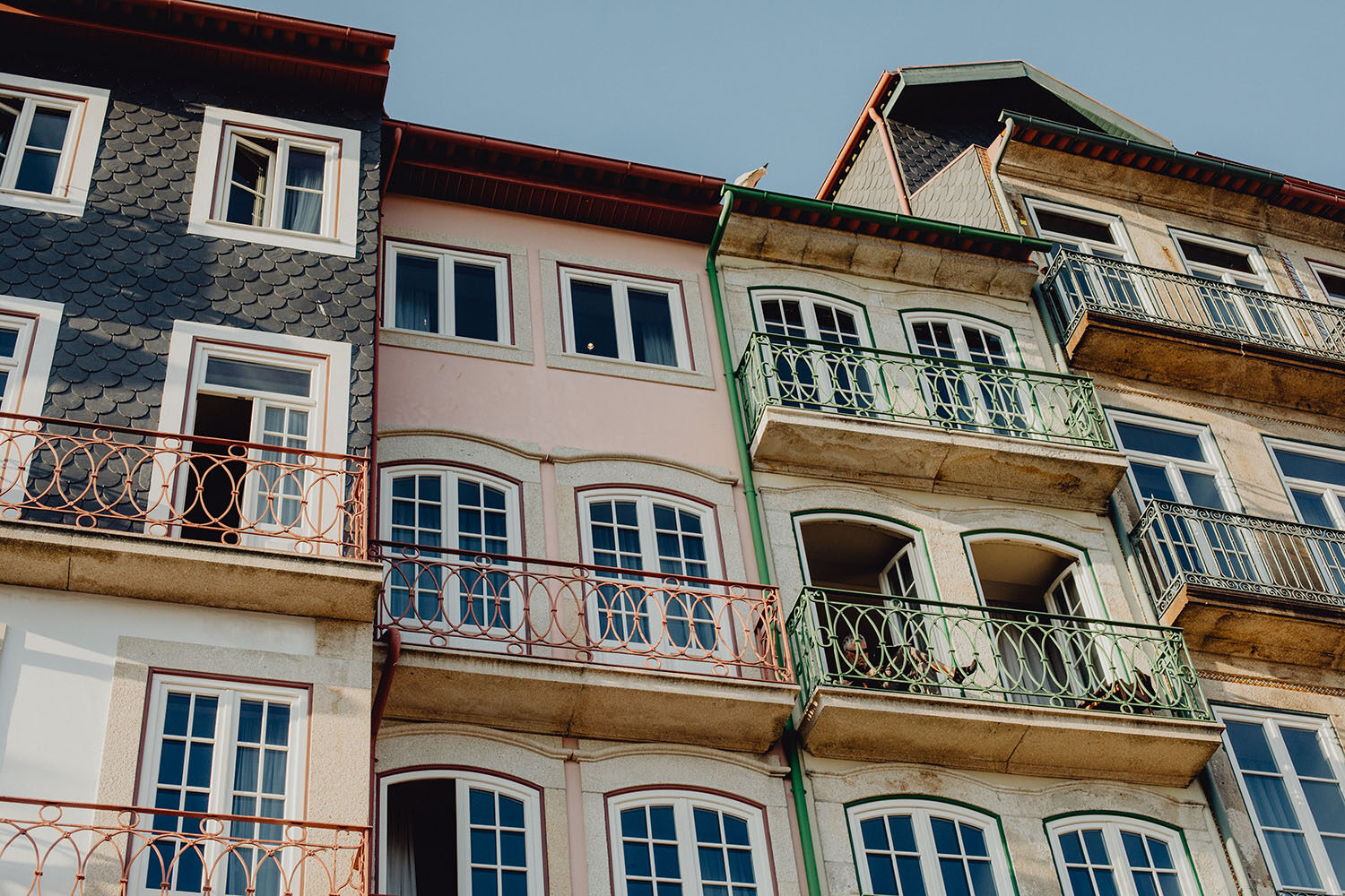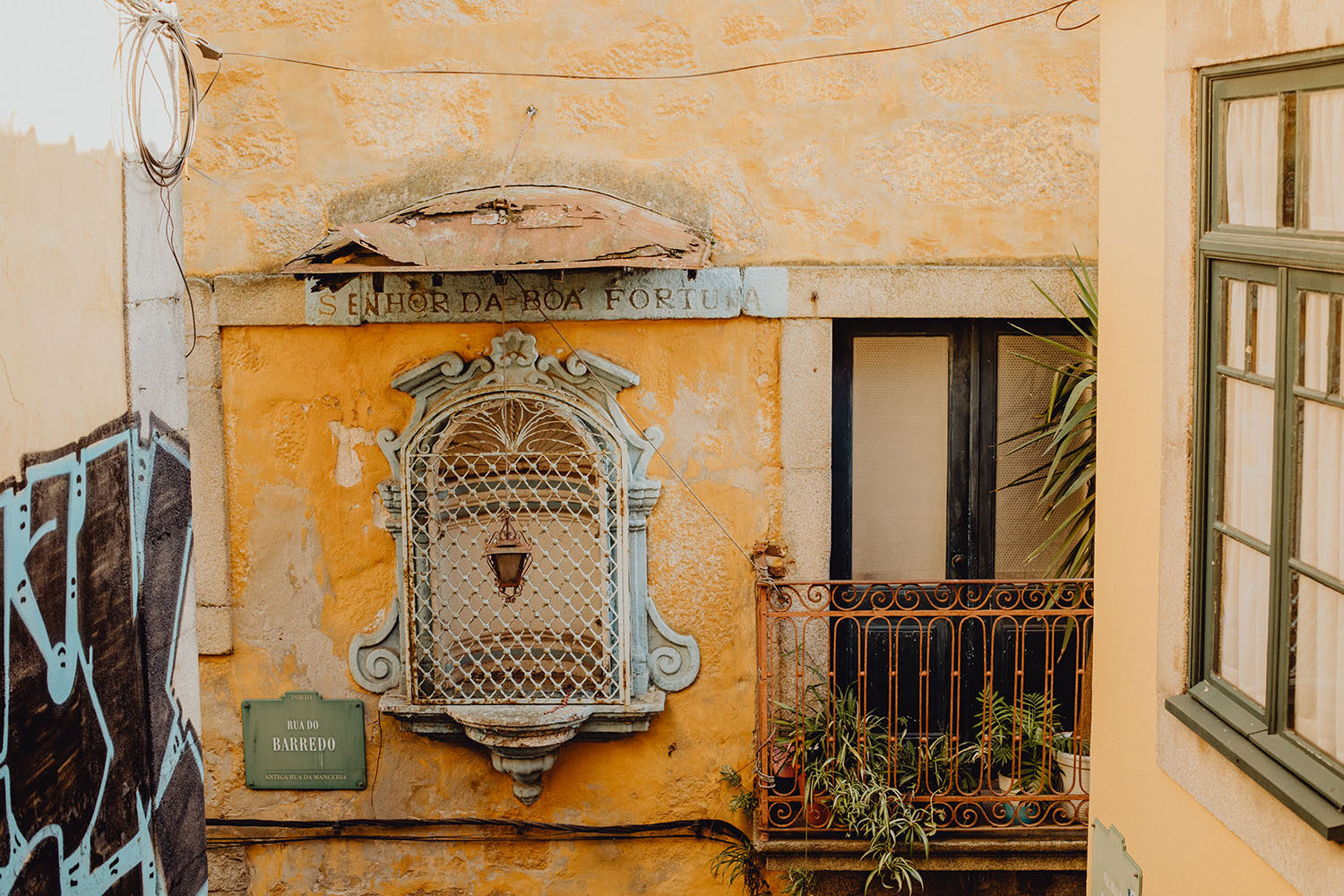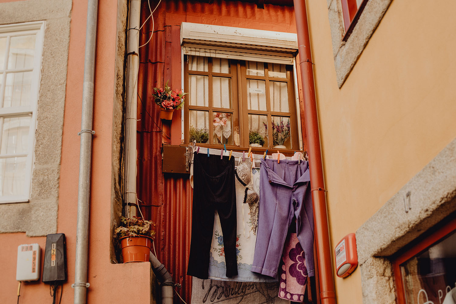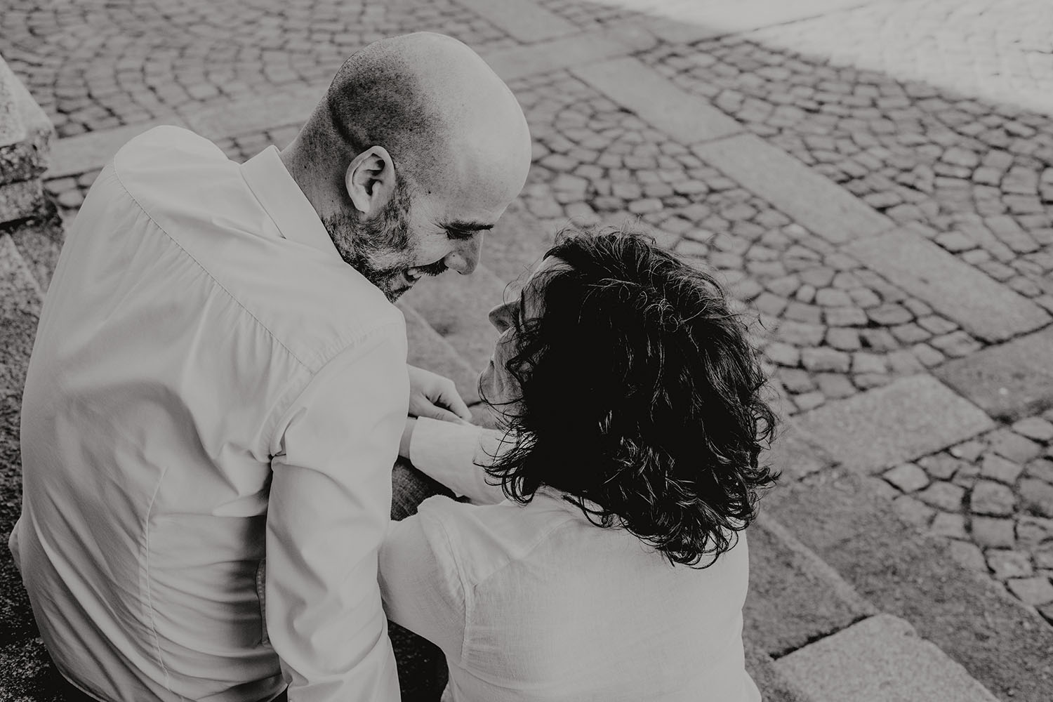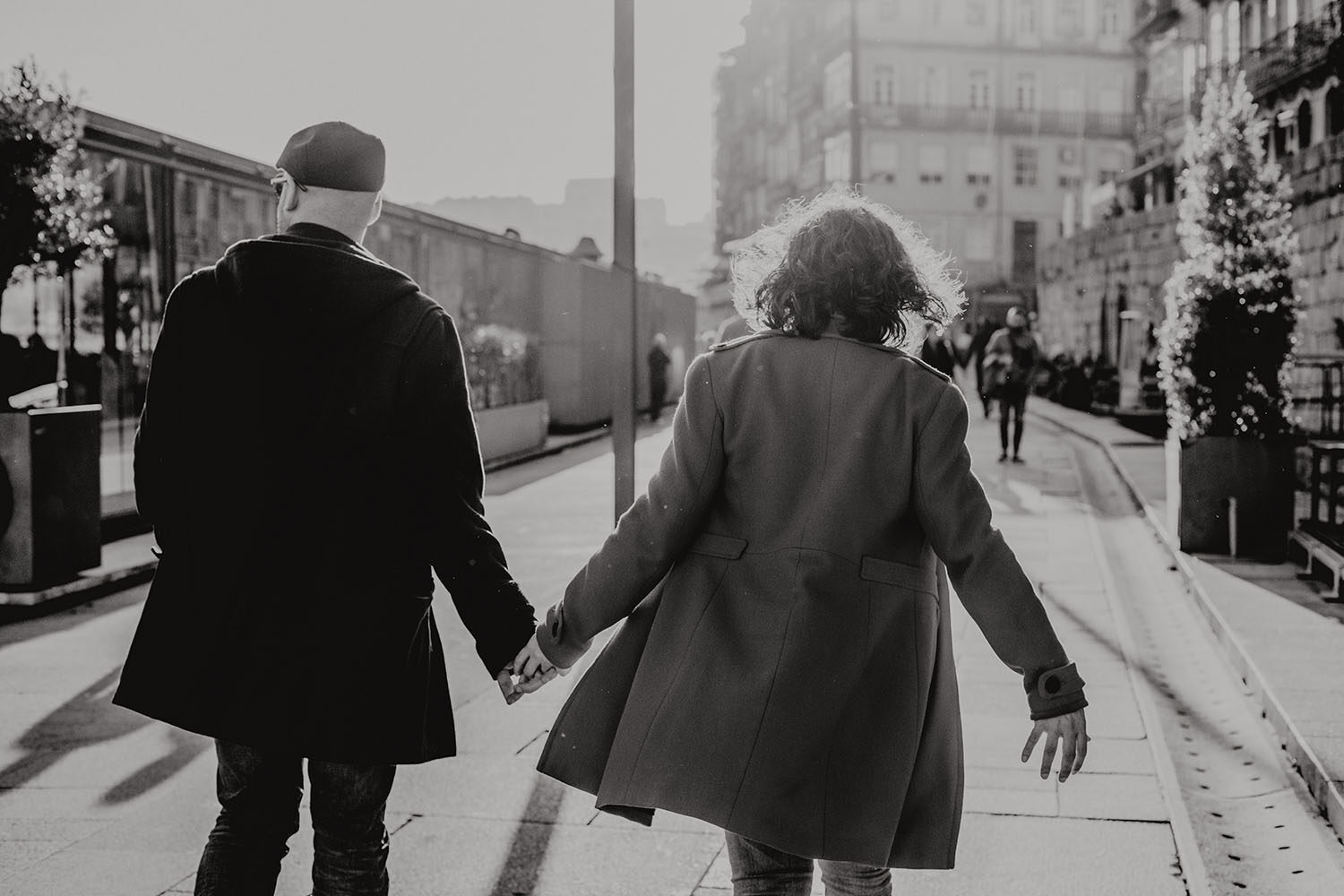 Por el momento, no tienen planes de boda, cuando se enteraron por las redes sociales que Fotógrafo Artístico iba a estar en Portugal haciendo el preboda a otra pareja, no dudaron en contactar con nosotros y contratar el reportaje de pareja urban. Les apetecía mucho tener un reportaje de fotos en Oporto, la ciudad que tan feliz les hace. Para nosotros fue una suerte poder conocer la ciudad de su mano. Su reportaje de fotos comenzó en la Estación de Sao Bento, y podemos decir que es una de las estaciones más hermosas que hayamos conocido. Continuamos caminando a la Catedral Sé do Oporto, hasta que nuestros pasos nos llevaron por sus callejuelas, tejados en los que crece la hierba, la ropa tendida en los balcones, las plantas en las puertas, sin duda es una ciudad de contrastes. Te sorprende con sus pintadas, graffitis y como no, por sus preciosos azulejos que no te dejaran indiferentes en fachadas como la de la Capilla de las Almas. Pasear por la Ribeira, llena de vida, de música, de su gente, sus gaviotas…y disfrutar de las vistas de la ciudad desde los diferentes miradores. Ver a Salu y Mauricio, comerse a besos y reirse juntos con esa complicidad, es enarmorarse un poquito también de ellos y por supuesto enamorarse de Oporto hasta las trancas!