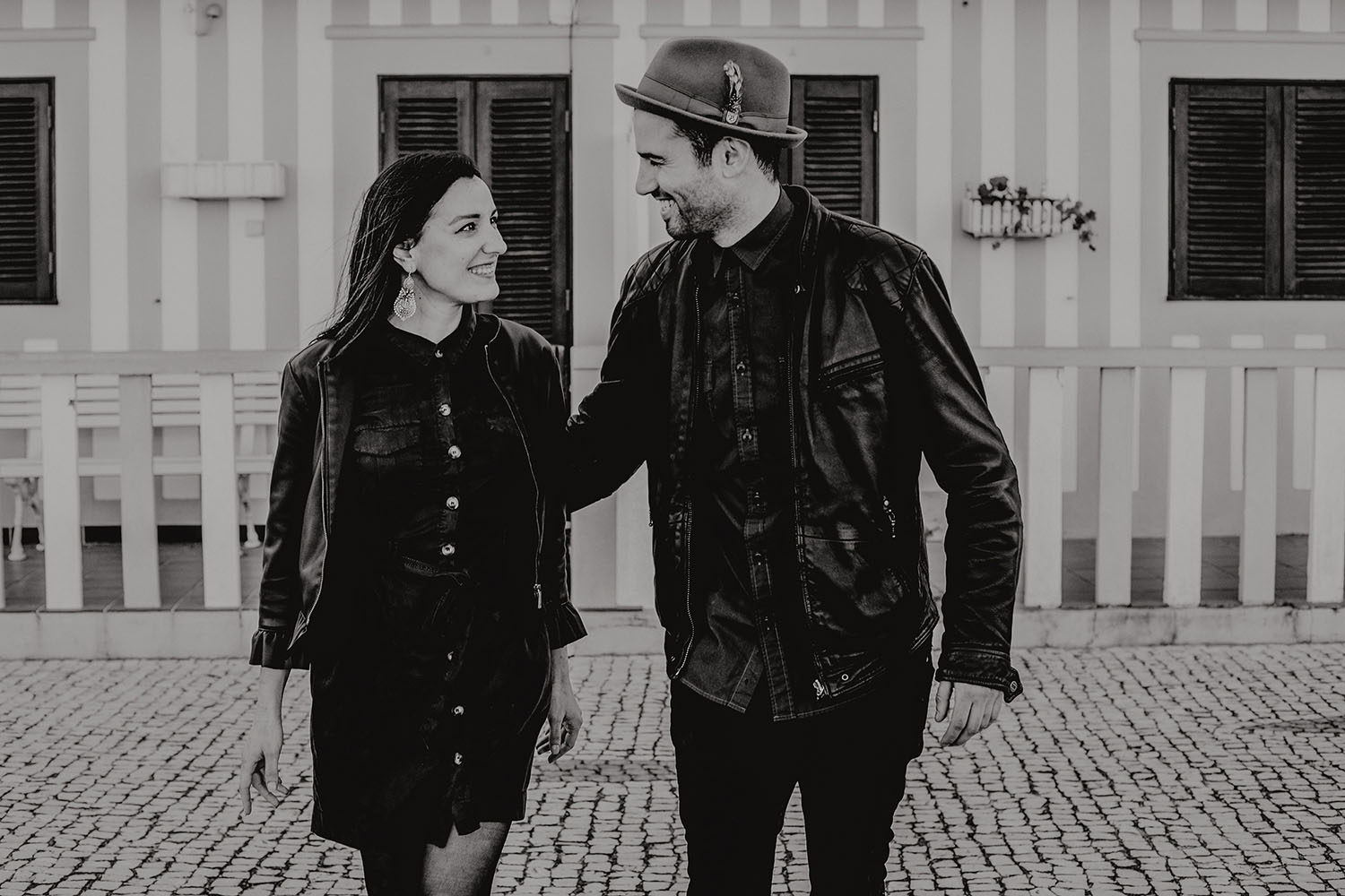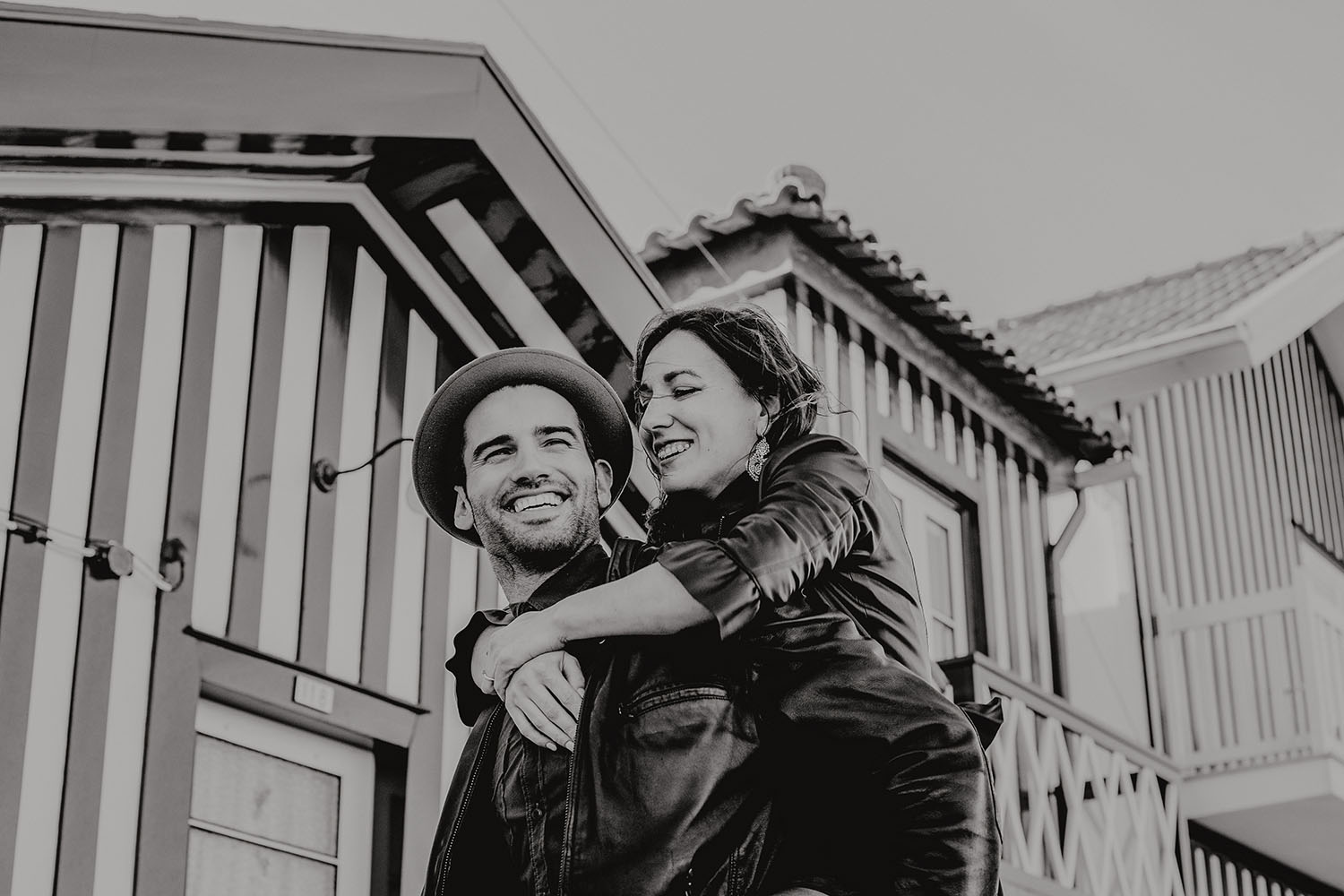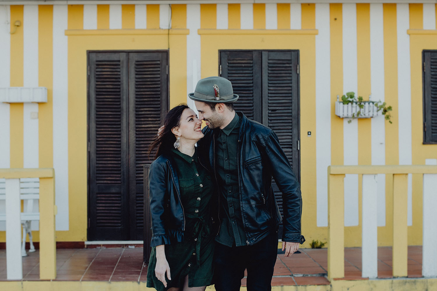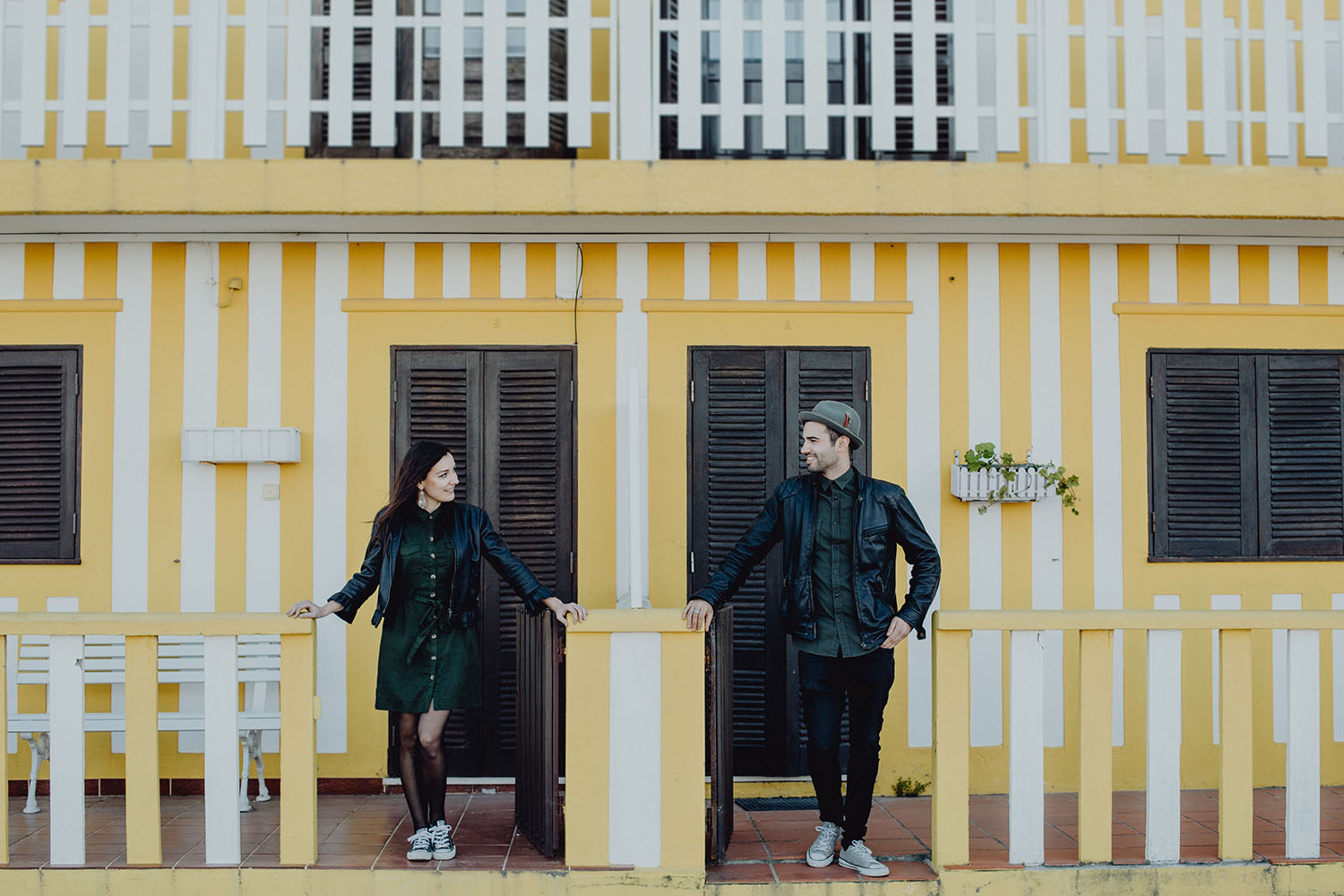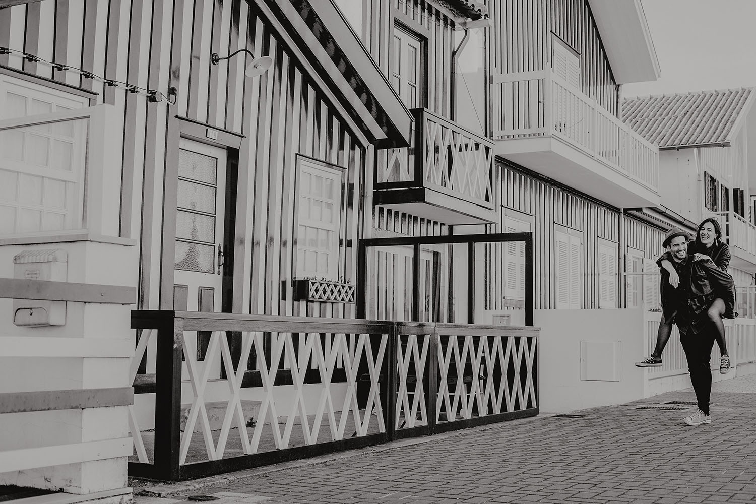 Huyendo del viento, hicimos la última localización del preboda, la habíamos elegido nosotros investigando por internet desde el pisito en Madrid. Pero llegar allí y ver todas esas casitas de cuento, superó nuestros expectativas. Una paleta cromática donde divertirse con saltos y carreras de la pareja, llenos de besos y risas. Así es Costa Nova, la playa más colorida de Portugal. En sus orígenes eran los palheiros las casas tradicionales de los pescadores, ahora la costa se viste de rayas de todos los colores, amarillas, rojas, verdes, azules…una oda al color, y a la estética que tanto nos vuelve locos a los fotógrafos.