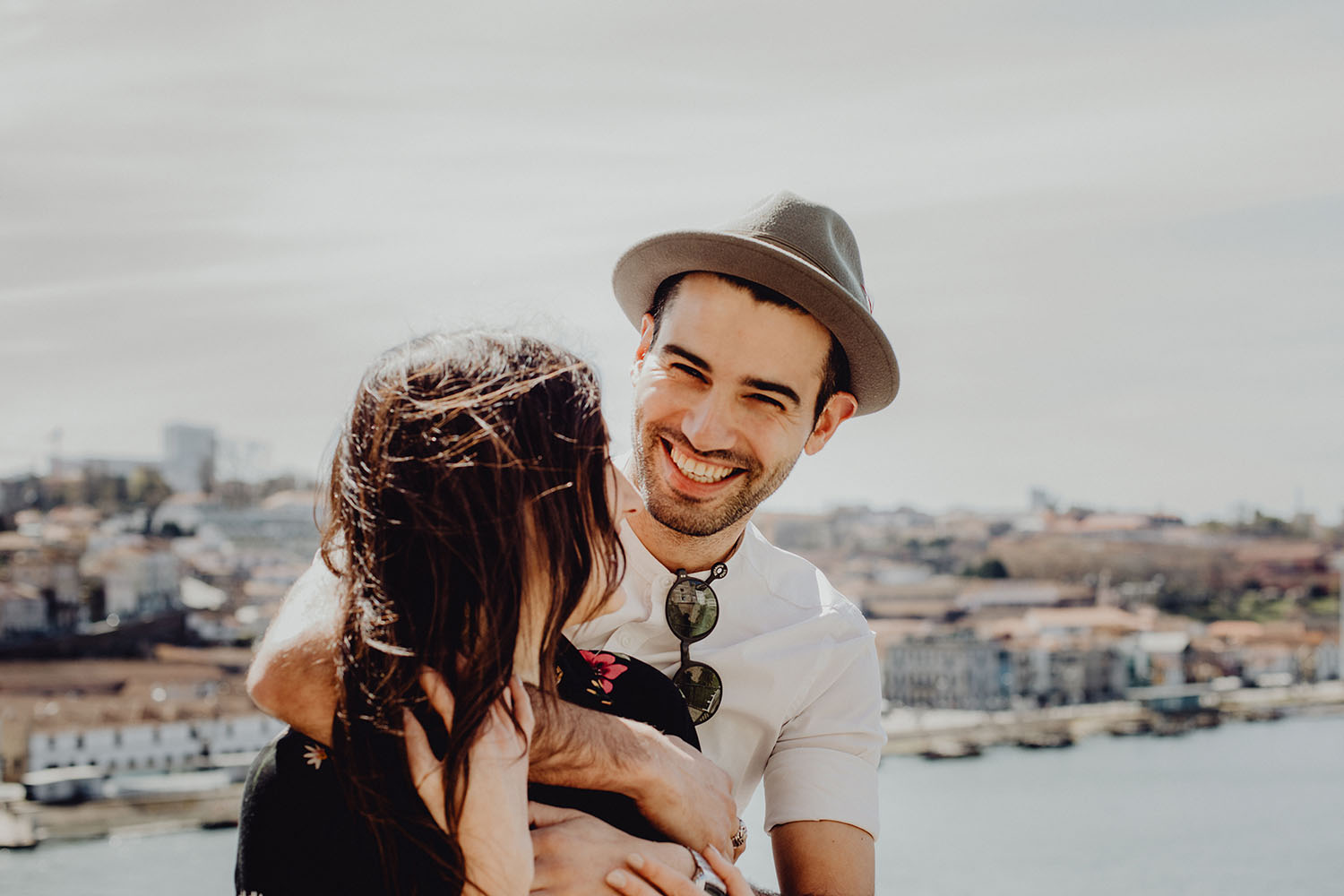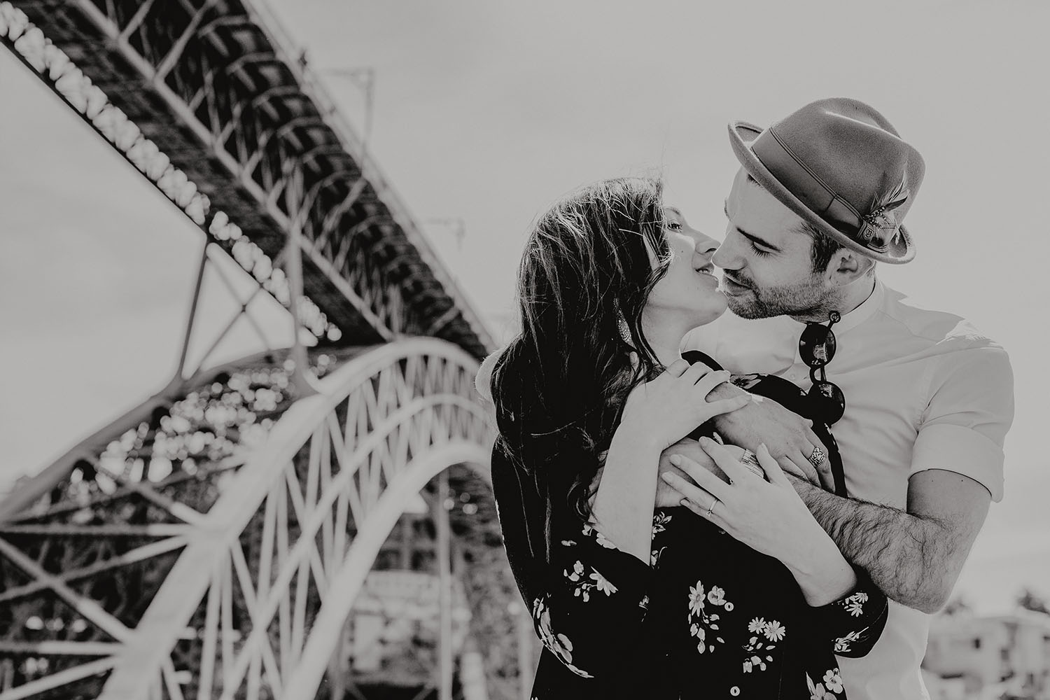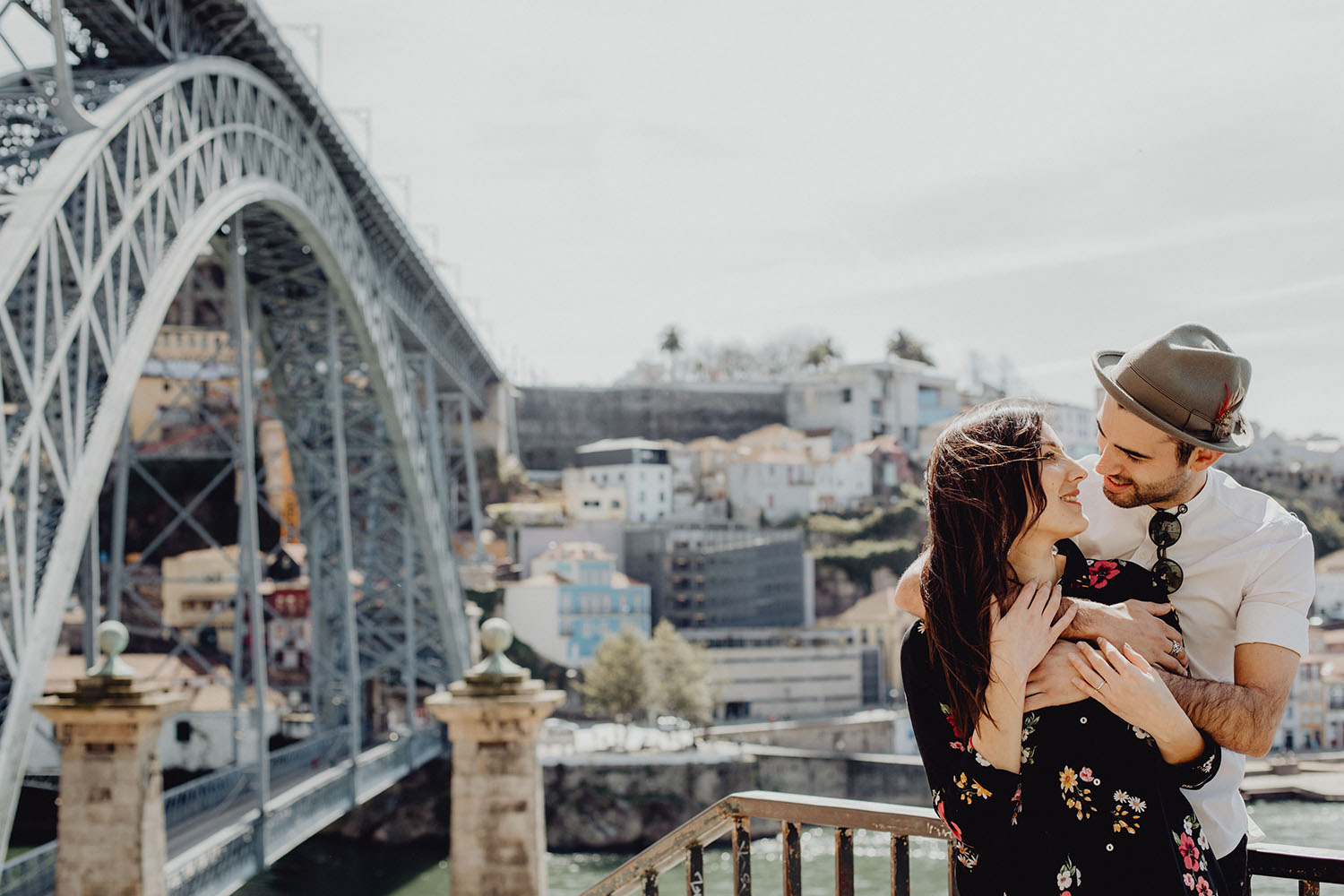 Nos habíamos visto un par de veces por videollamada. Es la forma de tener una primera toma de contacto con nuestros clientes cuando éstos no son de Madrid. El día que les hicimos su reportaje, quedamos en el Puente Don Luis I, en Oporto. Uno de sus lugares favoritos y quizá el más emblemático de la ciudad.