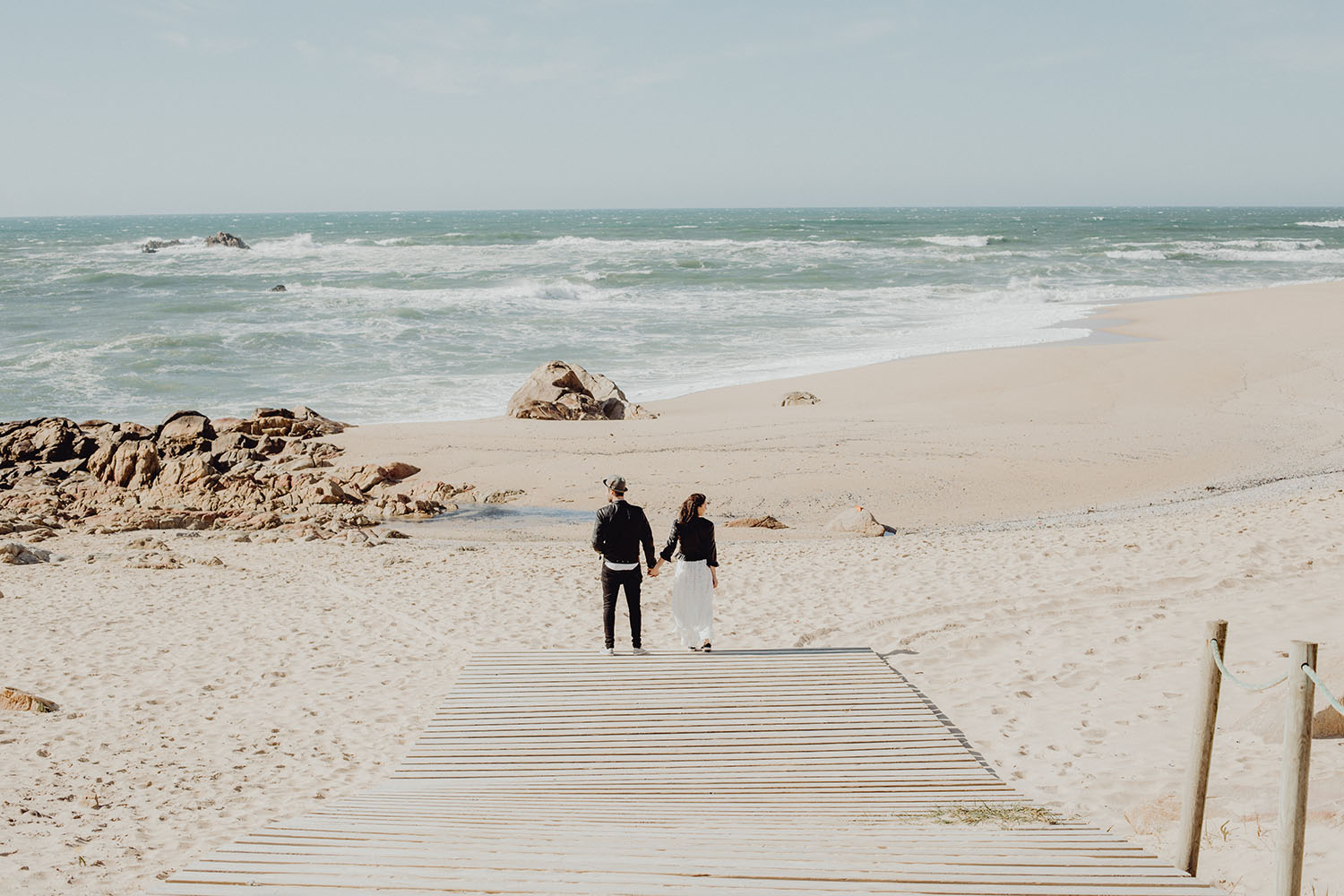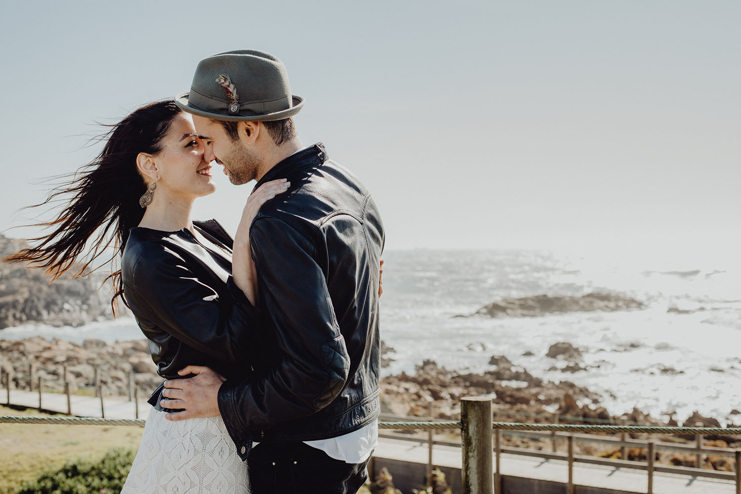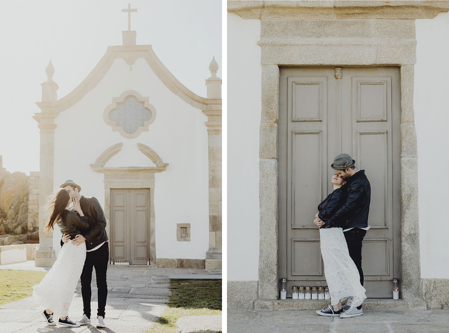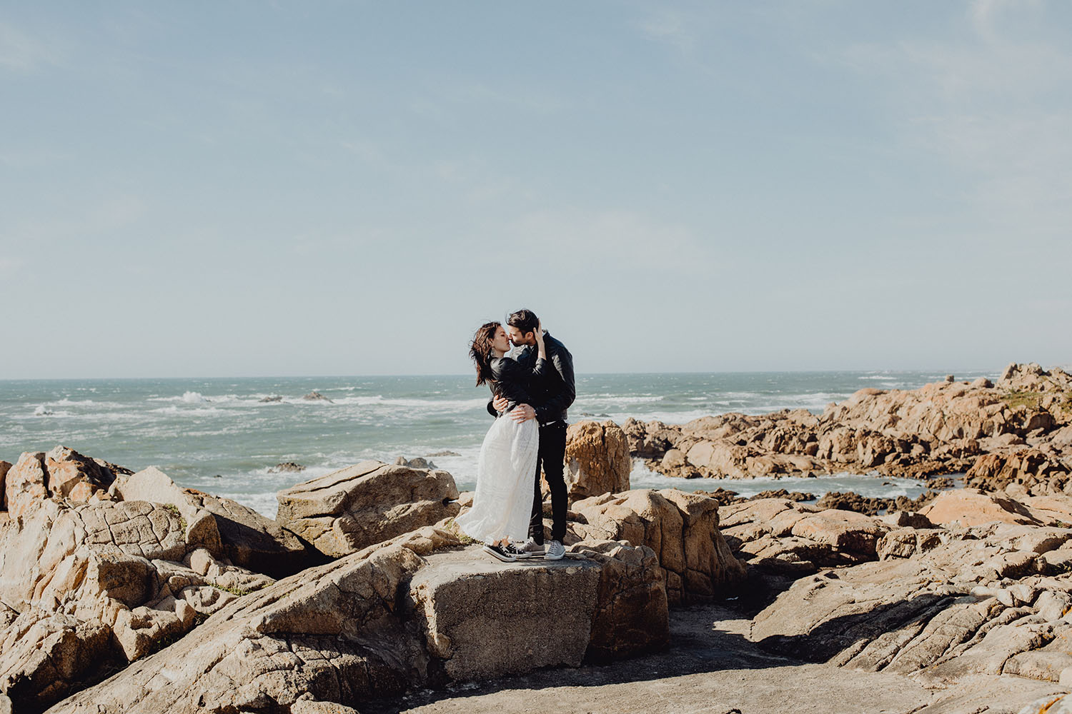 Cogimos el coche y viajamos aproximadamente 1 hora de Oporto hasta que llegamos a la playa de la Leça da Palmeira, en Matosinhos. Una de las playas favoritas de la pareja. Allí el viento fuerte nos sorprendía haciendo volar el pelo de Sara y su vestido. Las olas chocaban contra las rocas, y de fondo podíamos ver la Capilla de Nova de la Boa en el acantilado. Regalándonos unas fotos maravillosas como veréis en el resumen de su reportaje a continuación.