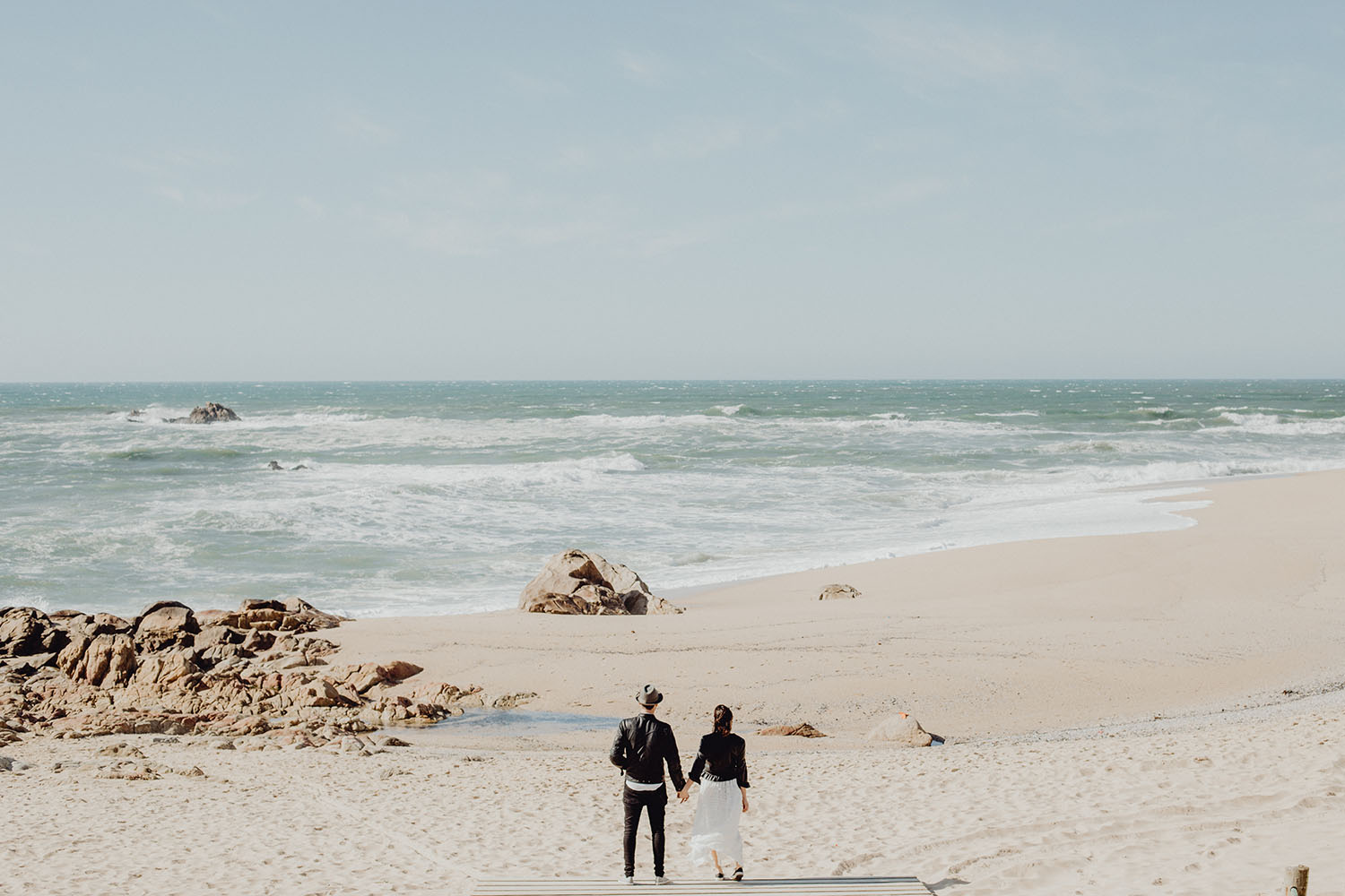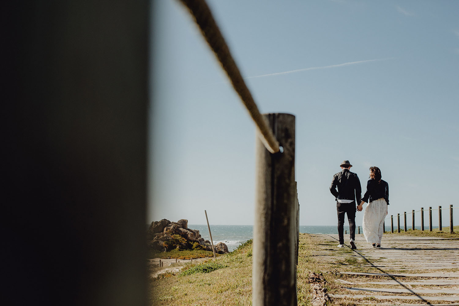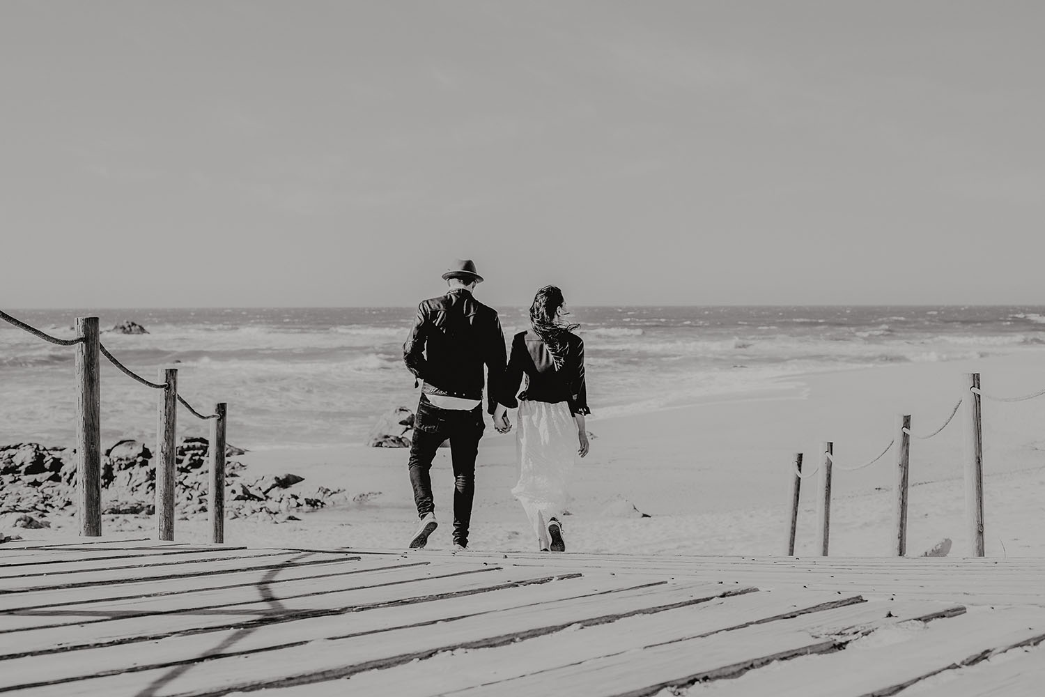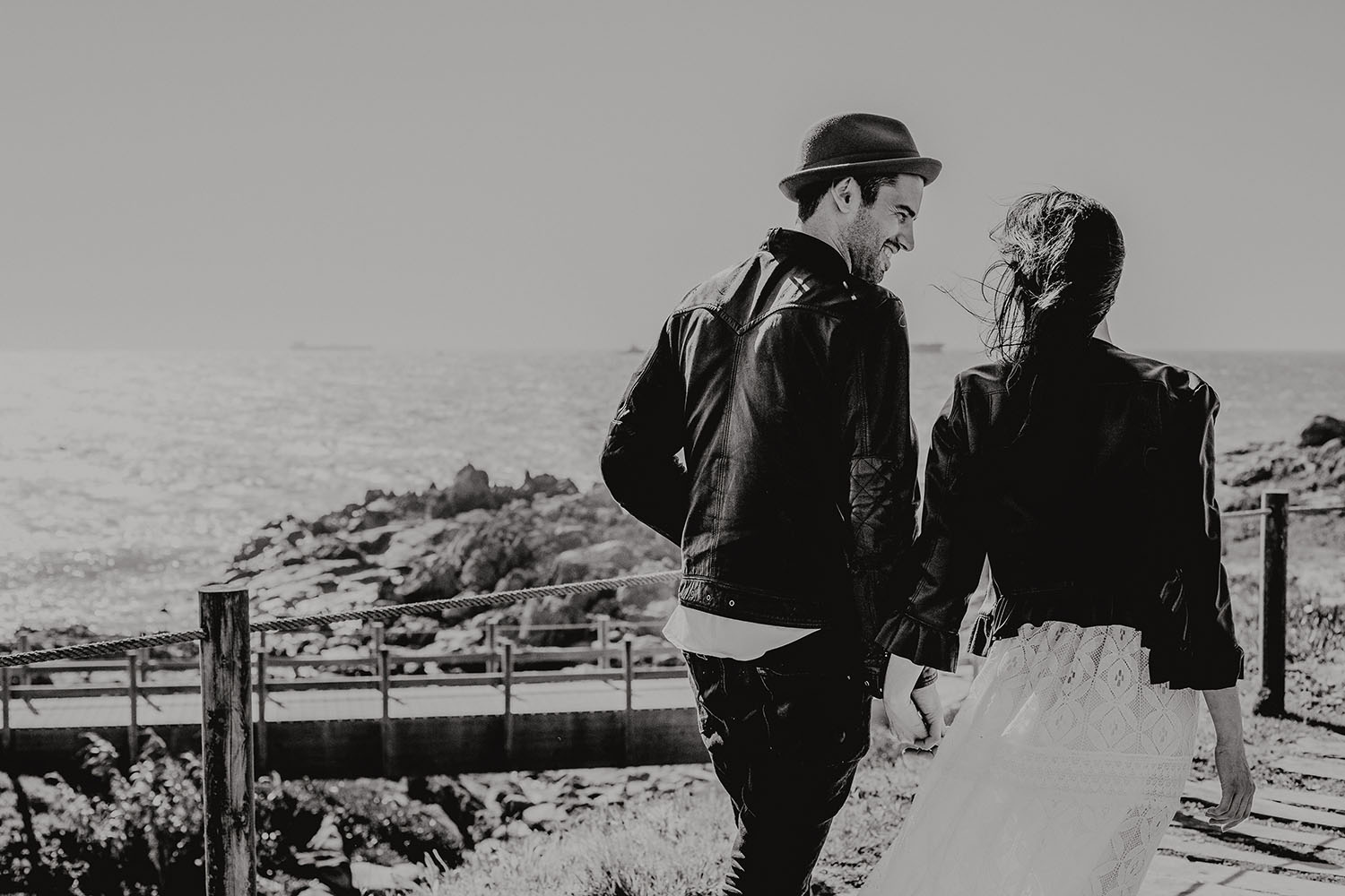 Cogimos el coche y viajamos aproximadamente 1 hora de Oporto hasta que llegamos a la playa de la Leça da Palmeira, en Matosinhos. Una de las playas favoritas de la pareja. Allí el viento fuerte nos sorprendía haciendo volar el pelo de Sara y su vestido. Las olas chocaban contra las rocas, y de fondo podíamos ver la Capilla de Nova de la Boa en el acantilado. Regalándonos unas fotos maravillosas como veréis en el resumen de su reportaje a continuación.